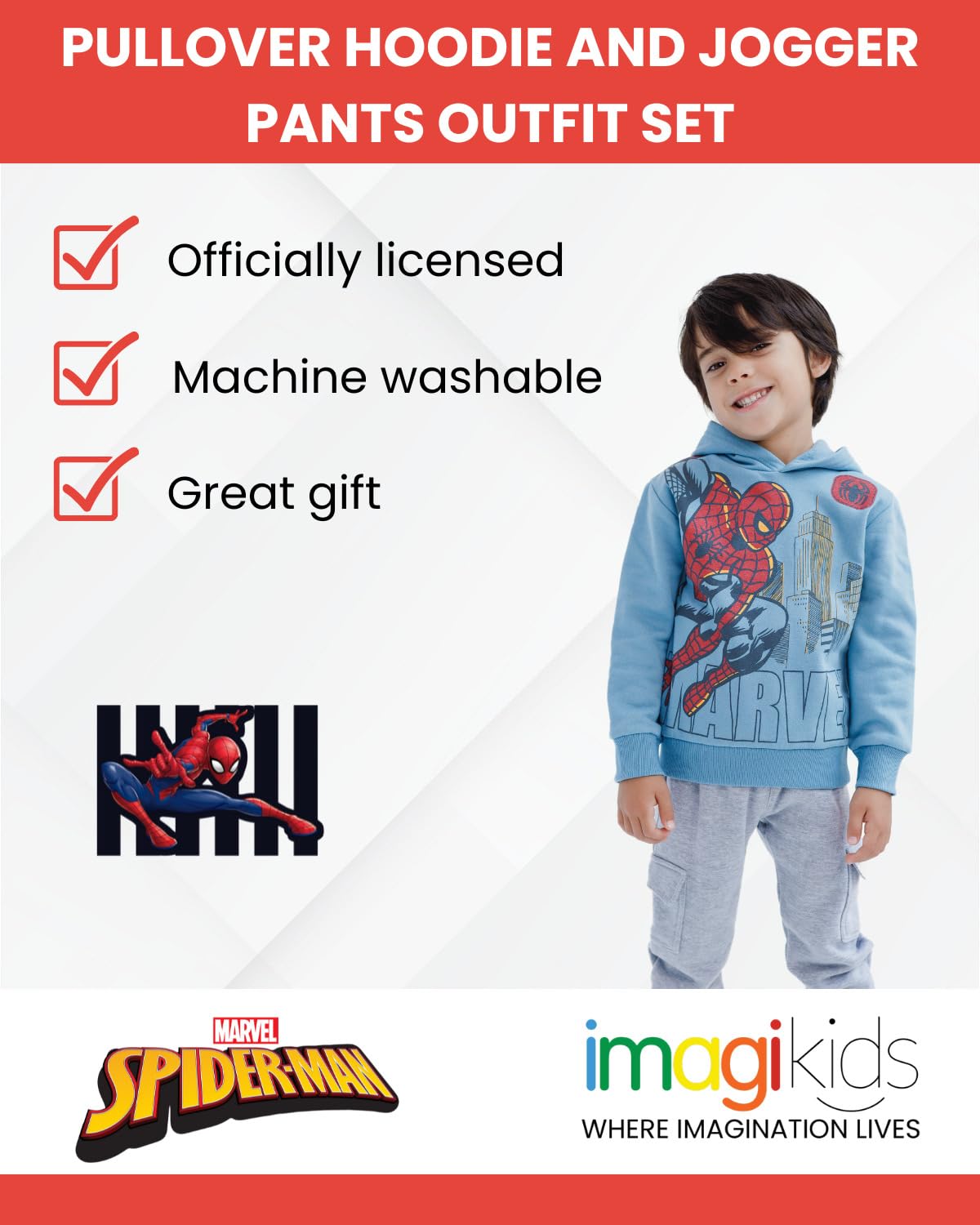 Officially licensed Marvel Spider-Man little boys long sleeve graphic hooded sweatshirt and pants