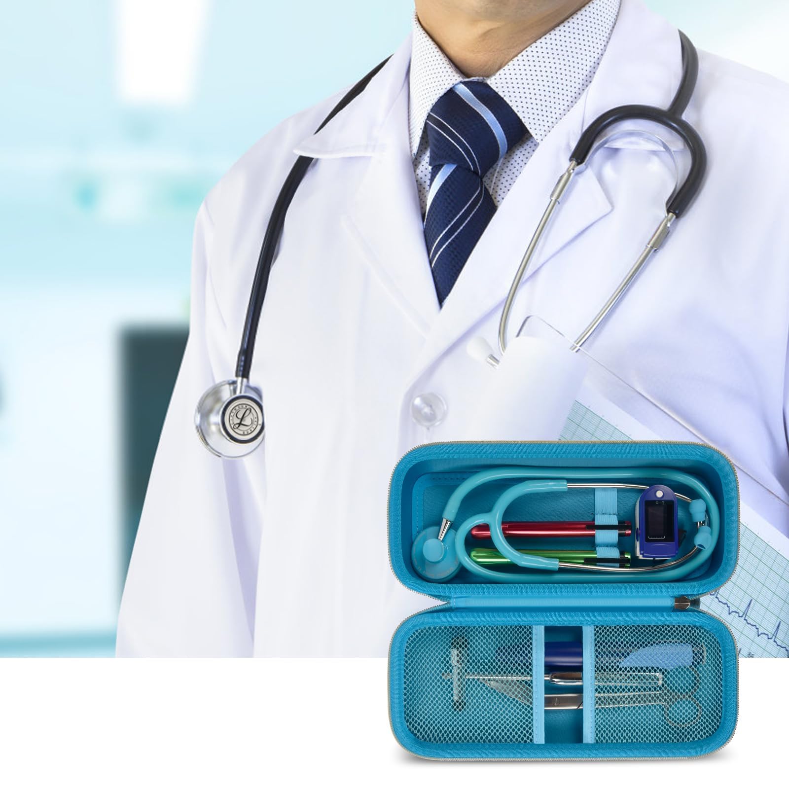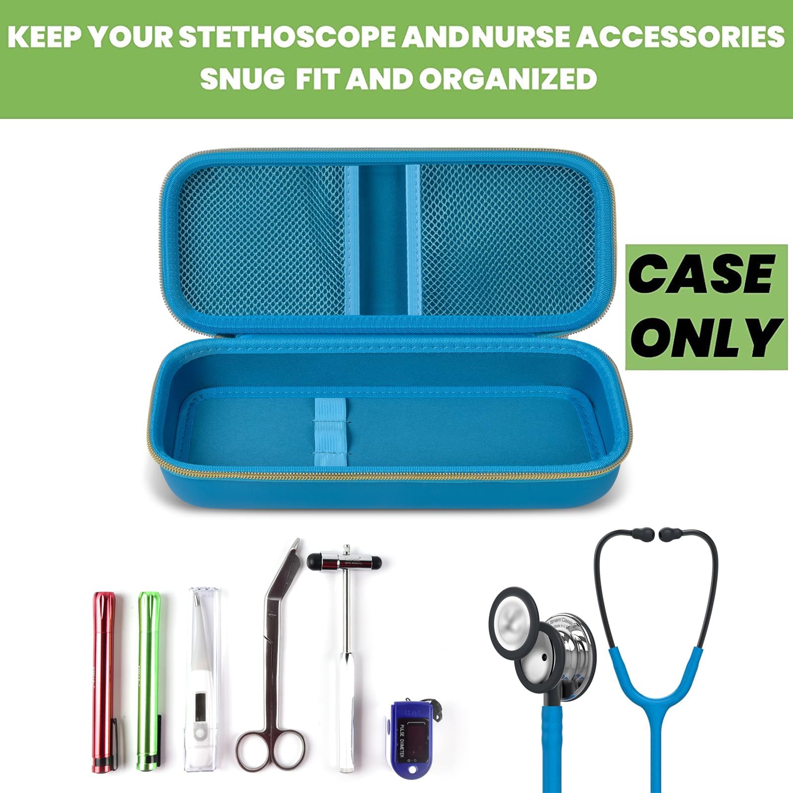 Stethoscope Case of Comprehensive Protection: This case is made of the hard EVA materials, the anti-static, shockproof layer and fluffy fabric inner layer fully padded and effectively absorb impacts, compact fully protect the stethoscope, neurological reflex hammer, medical thermometer, pulse oximeters, and other Littman stethoscope accessories. Prevent shaking and loss; avoid stethoscope breaking.