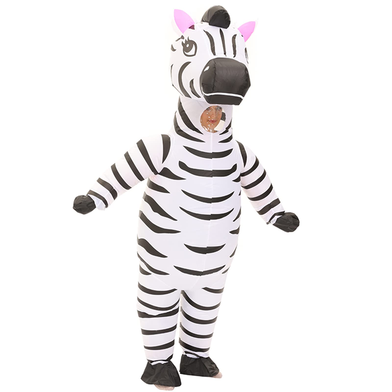 【COMFORTABLY WEAR】: The zebra costume is very easy to inflate. Easy to walk, dance, jump, stand, sit, and run. So comfortable and interesting.