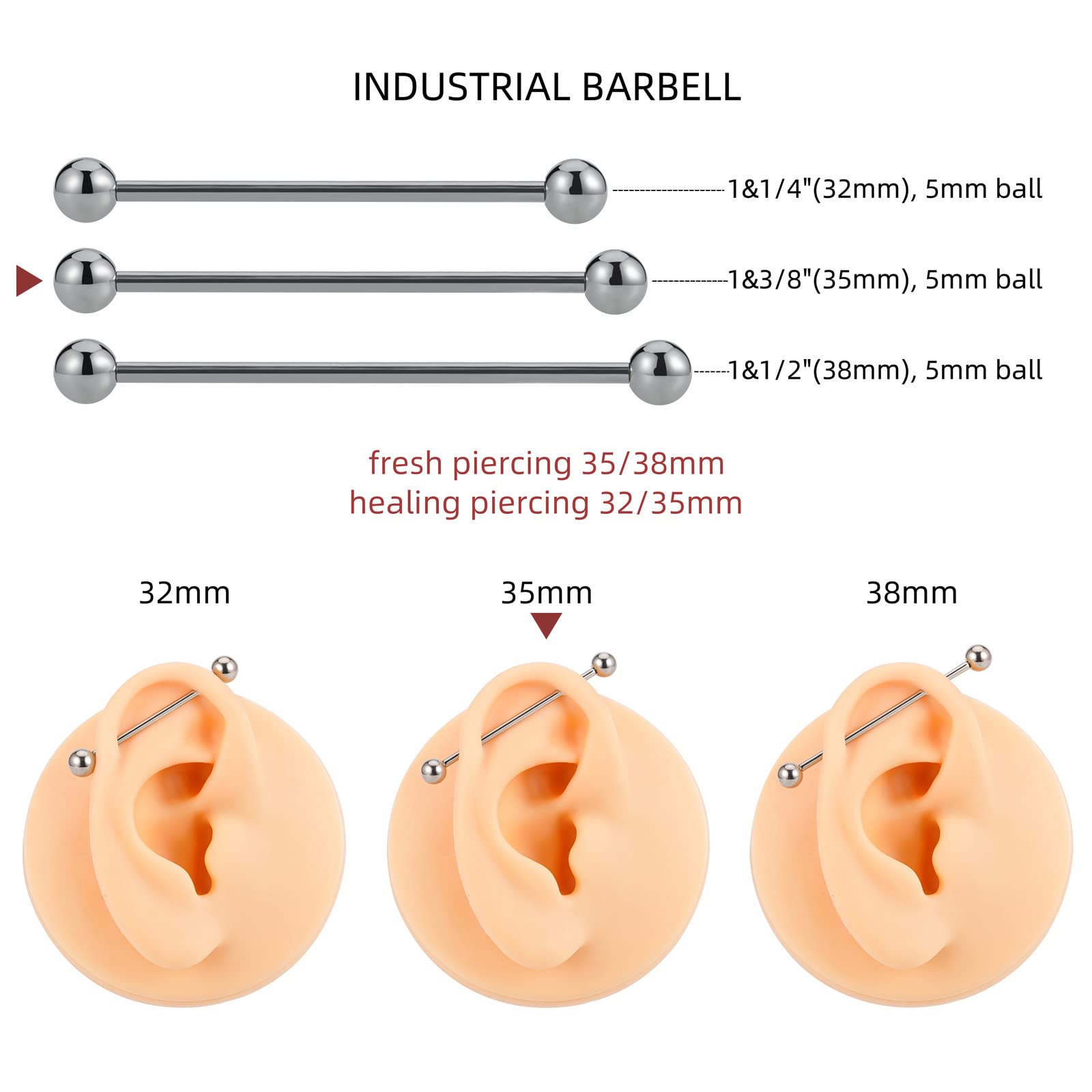 1. [ Size ]: 14G(1.6mm) * 1&3/8"(35mm) * 5mm, This Size Is Suited For Nipple And Tongue. If You Have No Idea, Please Ask Your Piercer Or Contact Us.