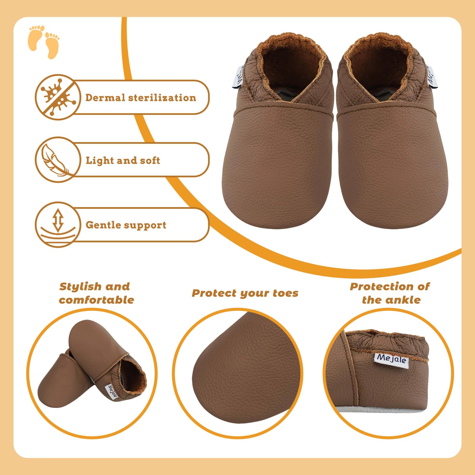 β₯Made of genuine soft Leather, slip-on shoes with elastic ankle, great shoes between a sock and a shoe for beginning crawlers and walkers. The moccasins soft leather can protect the baby's feet and enable them to learn to walk in a positive and natural manner