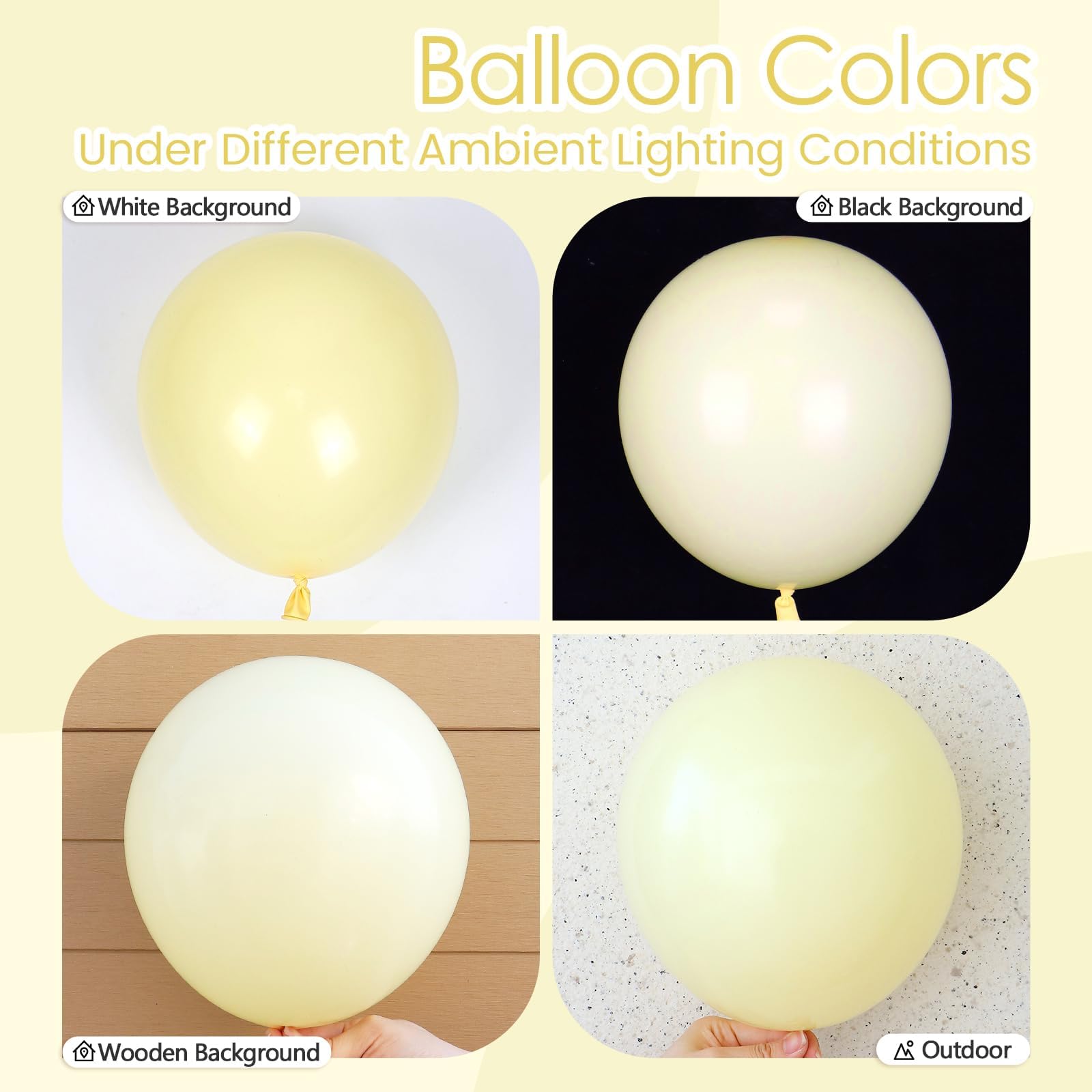 Great Balloons: The light yellow balloons are made of premium natural latex. Each balloon undergoes rigorous testing and selection, can be offer superior elasticity and durability, being thicker and less likely to burst