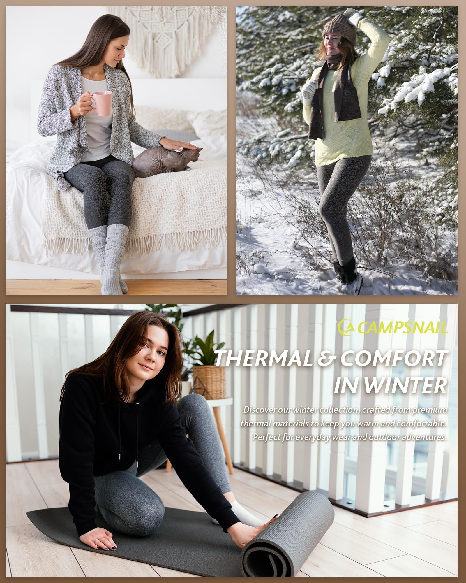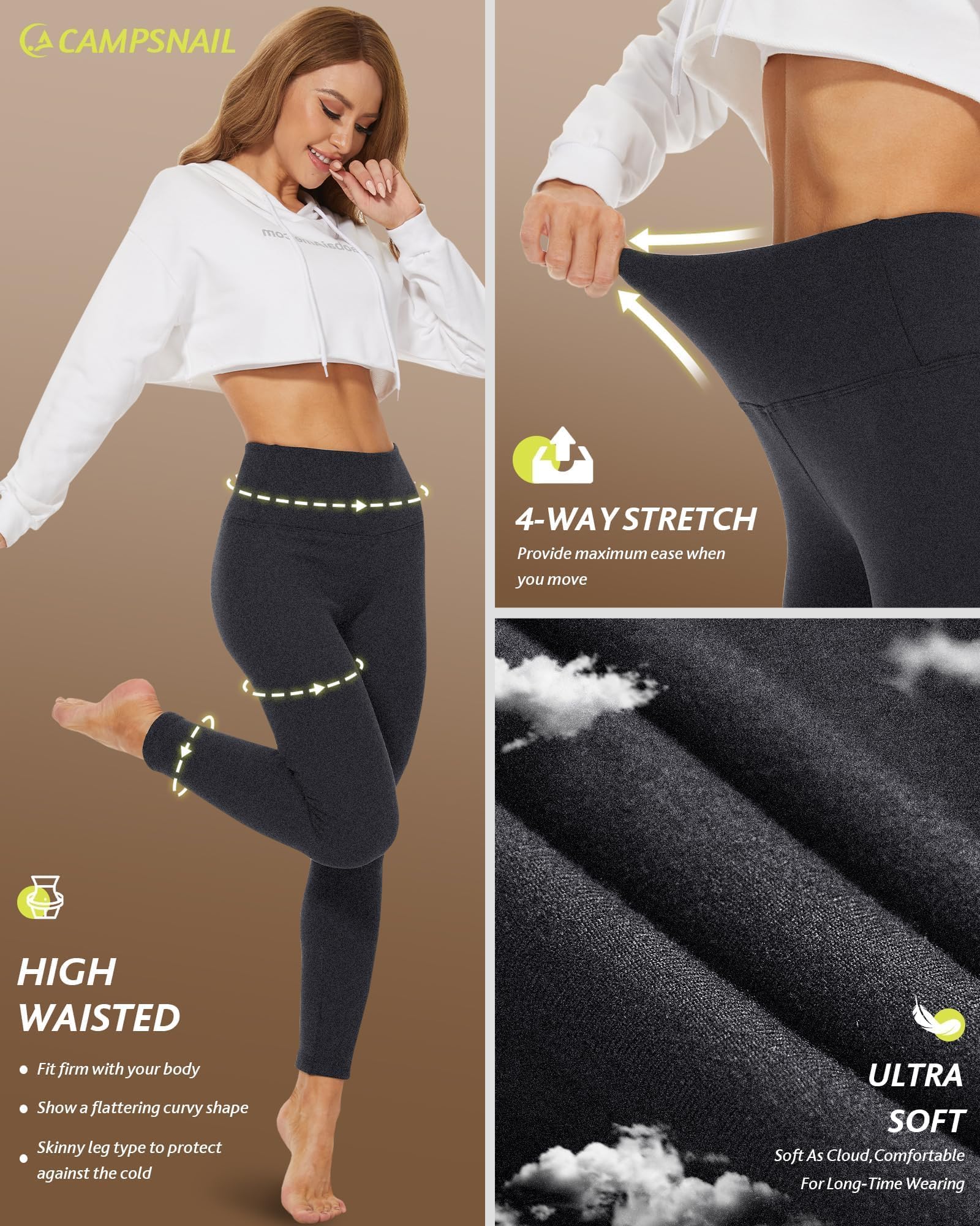 Thermal Fleece Lined Leggings: CAMPSNAIL leggings for women featured a thicked fleece interior to trap heat, keep you warm and comfortable in cold weather. Perfect for hiking, yoga, biking, outdoor running, or trip in winter