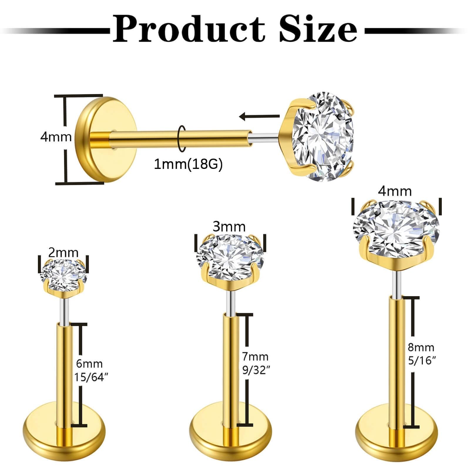 ❥Earring Stud Size❥18G, bar length: 6/7/8mm, CZ dia.: 2/3/4mm.Each bar and top CZ can be switched at will, you can wear different parts on different occasions.