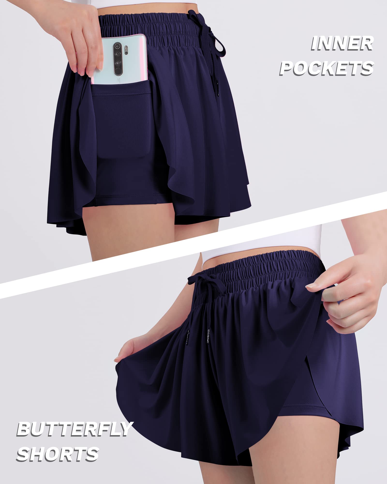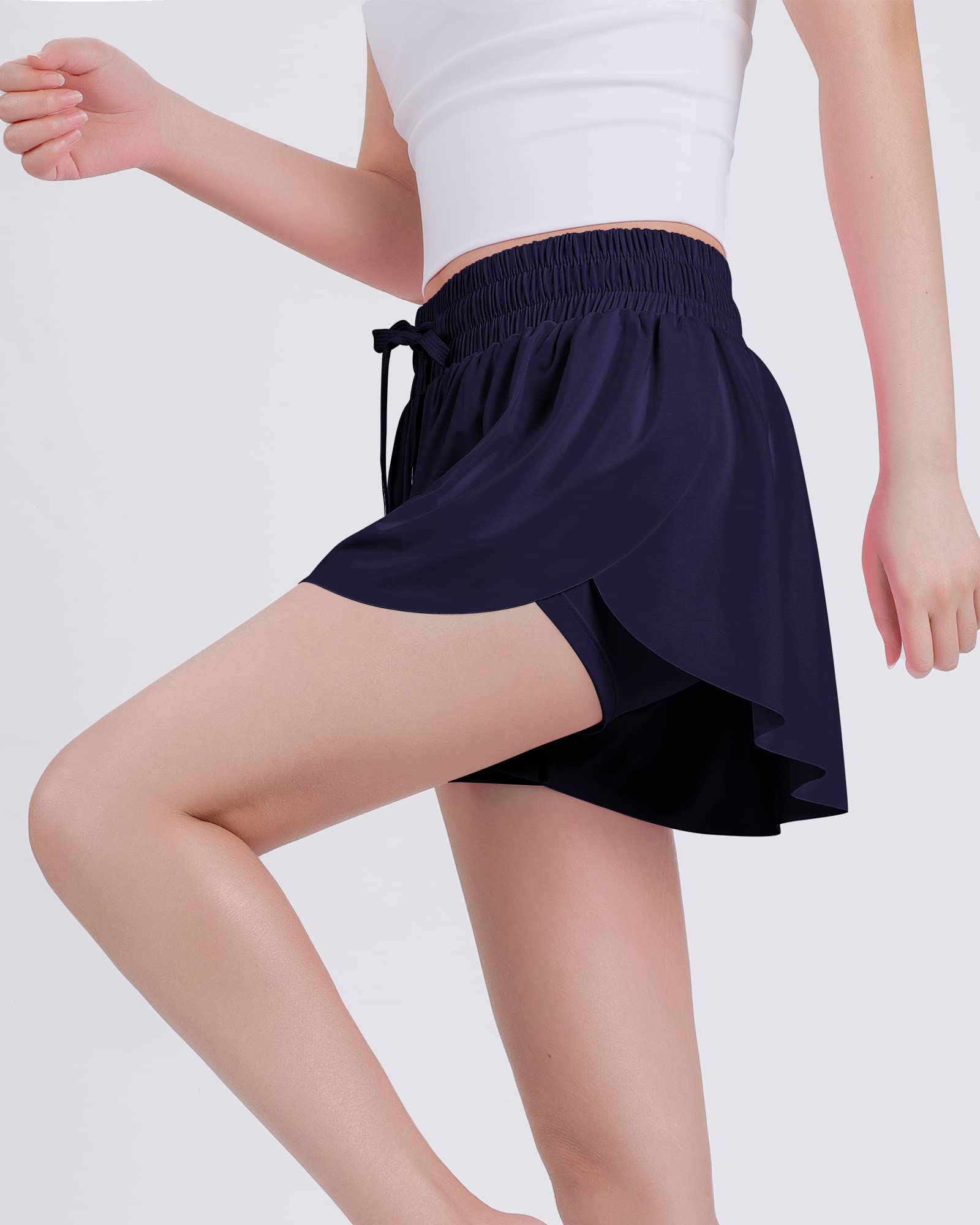 Skort Style with Liner: Flowy outer shorts with a hidden inner liner for full coverage protection, Prevents exposure during twirls, climbs, or bends