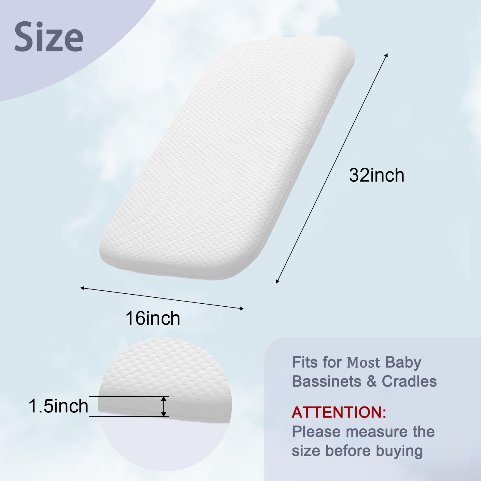 【Suitable for】This size baby bassinet mattress compatible with Dream On Me Karley and Willow baby bassinet or other 32'' x 16'' size baby bassinet, specifically designed to fit oval shaped bassinets.