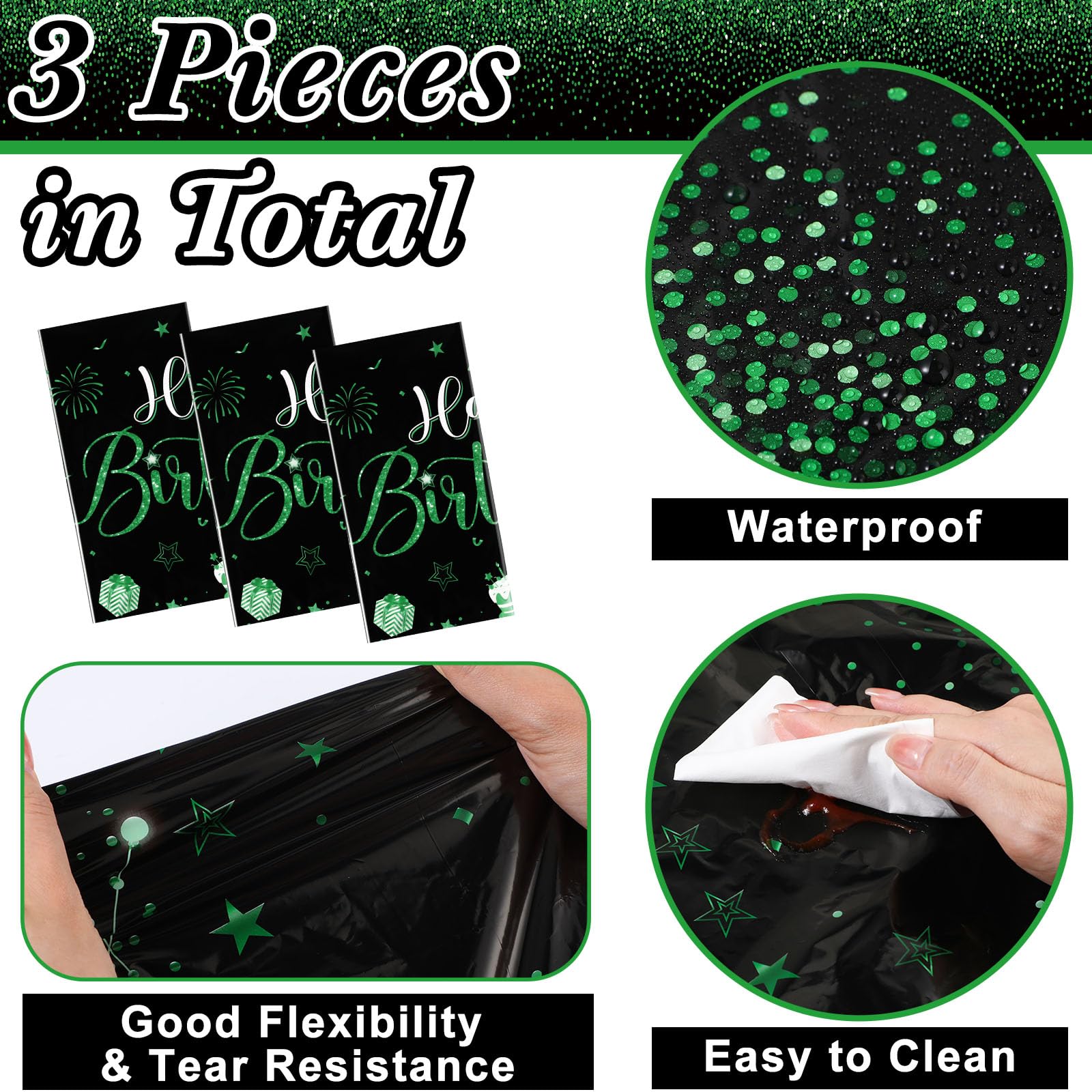 What You Will Receive: the package contains 3 pieces of happy birthday tablecloths in classic black and green colors, enough to meet your using and replacing needs for holding a birthday party