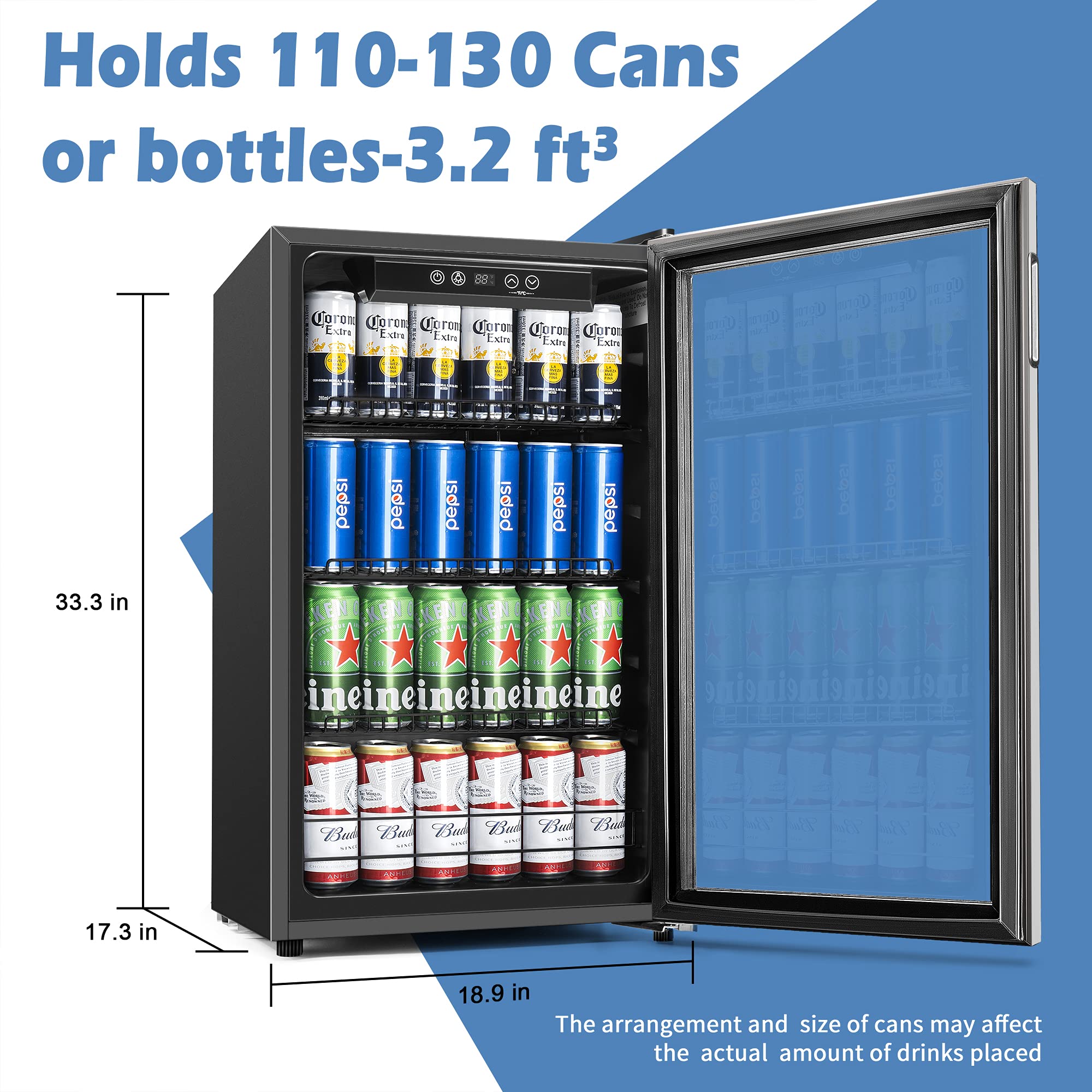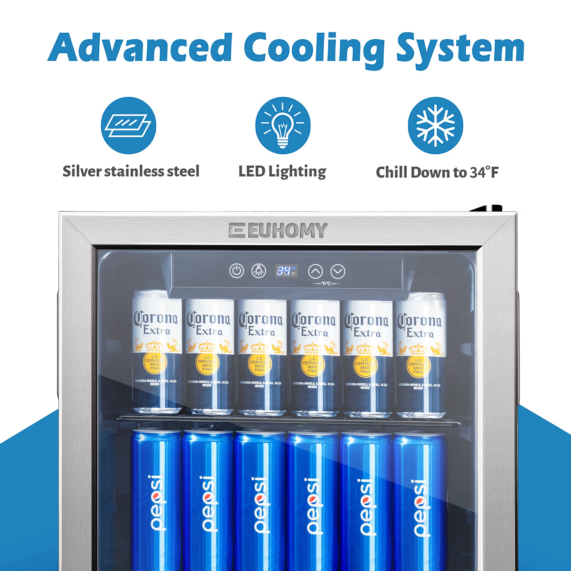 EUHOMY 4.0 Cu.Ft Beverage Refrigerator Cooler- Mini Fridge Cooler with Glass Door, Adjustable Shelves & Digital Temperature Display for Beer, Soda, Wine or Beer.