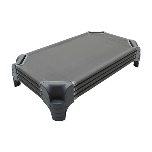 Naps are essential for growing kids and their developing minds during early childhood. FDPs Stackable Toddler Cots provide little ones with a secure place to rest up during naptime at daycare, preschool or even at home. Stackable cots boast a low profile for even the most active nappers, plus sufficient space to add personal comfort items or blankets. Cots are convenient to store under a bed or in a closet and can aid in a successful naptime routine at daycare or a restful and sleep-over at grandma and grandpa's. Designed for everyday use with breathable PVC coated mesh fabric that is easy to wipe clean when accidents happen. Mesh is detachable and secured with heavy-duty hook-and-loop fasteners so little ones can't easily detach from the frame. The waterfall-style cot corners nest together for space-saving efficiency and can be stacked up to 12 high. 18-gauge steel frame supports up to 90 lbs. Cots comply with state naptime standards and regulations. Cots arrive fully assembled and ready to use right out of the box. Designed in San Diego and made in Mexico with globally sourced materials.