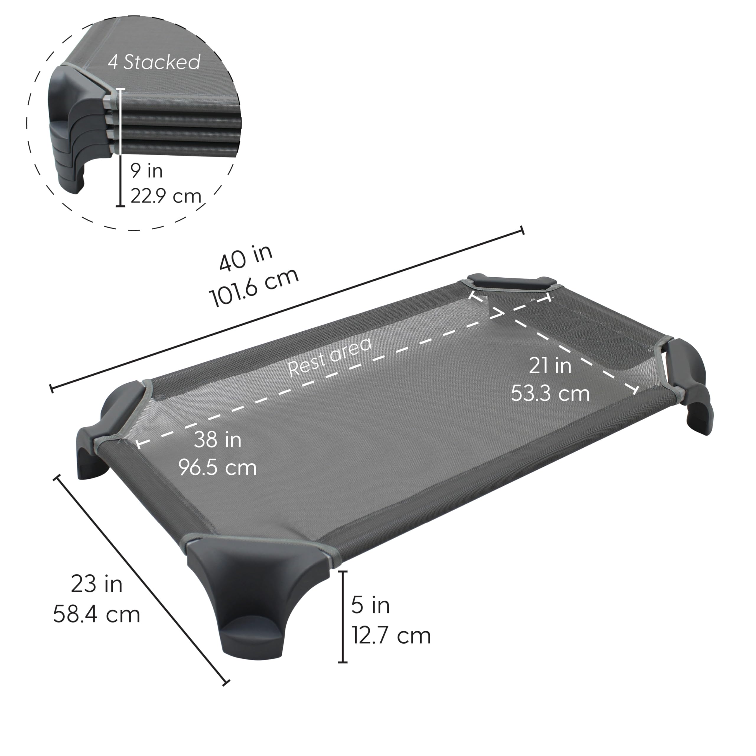 PRODUCT SPECIFICATIONS: each cot measures 40" L x 23" W x 5" H; up to 90 lb weight capacity; includes 4 assembled cots