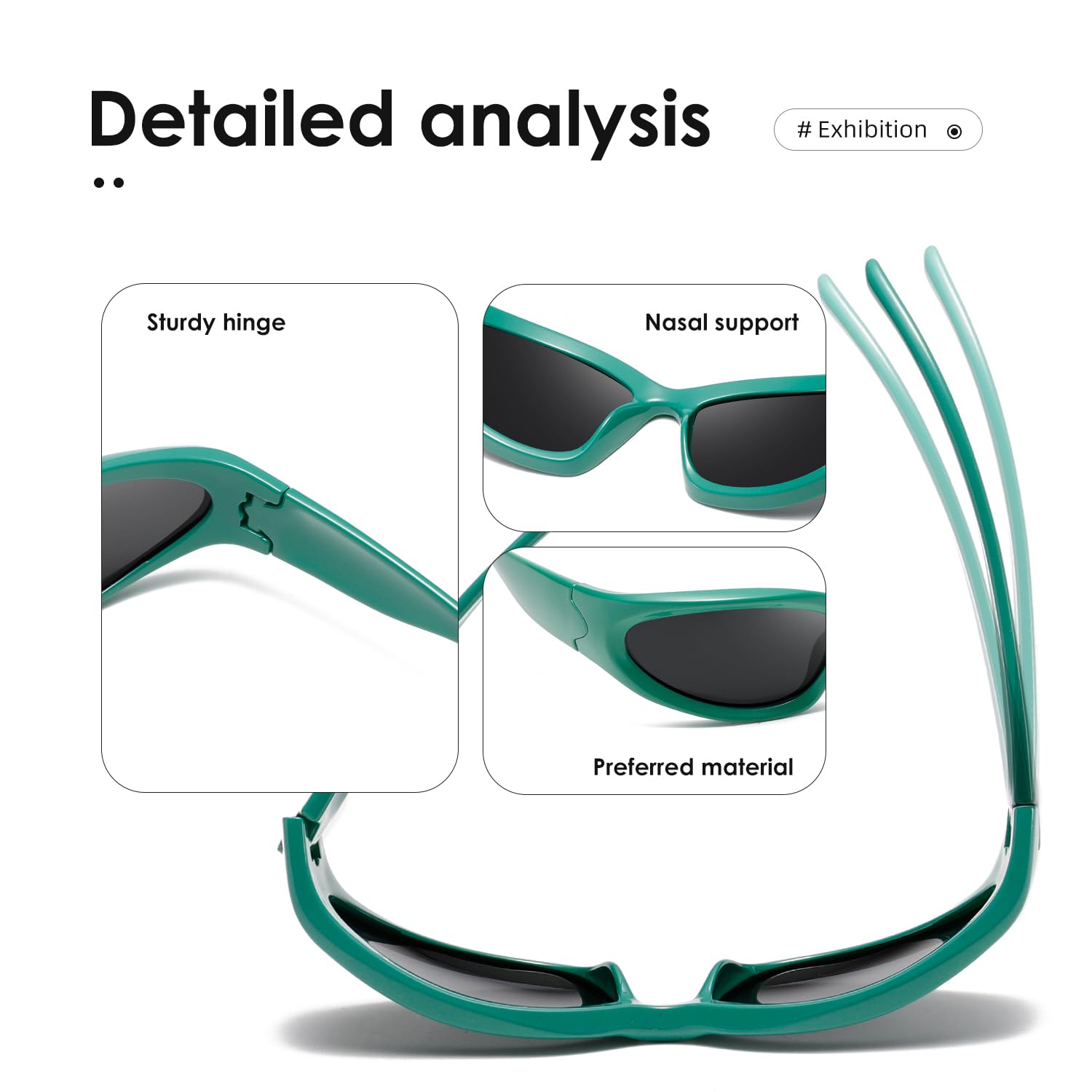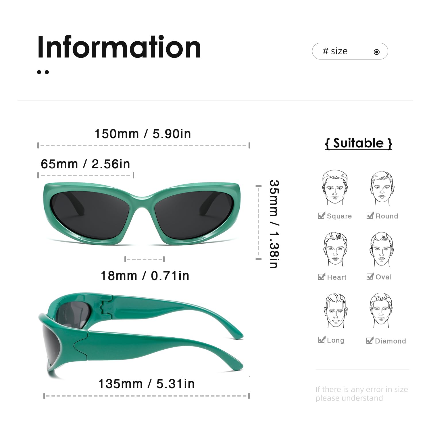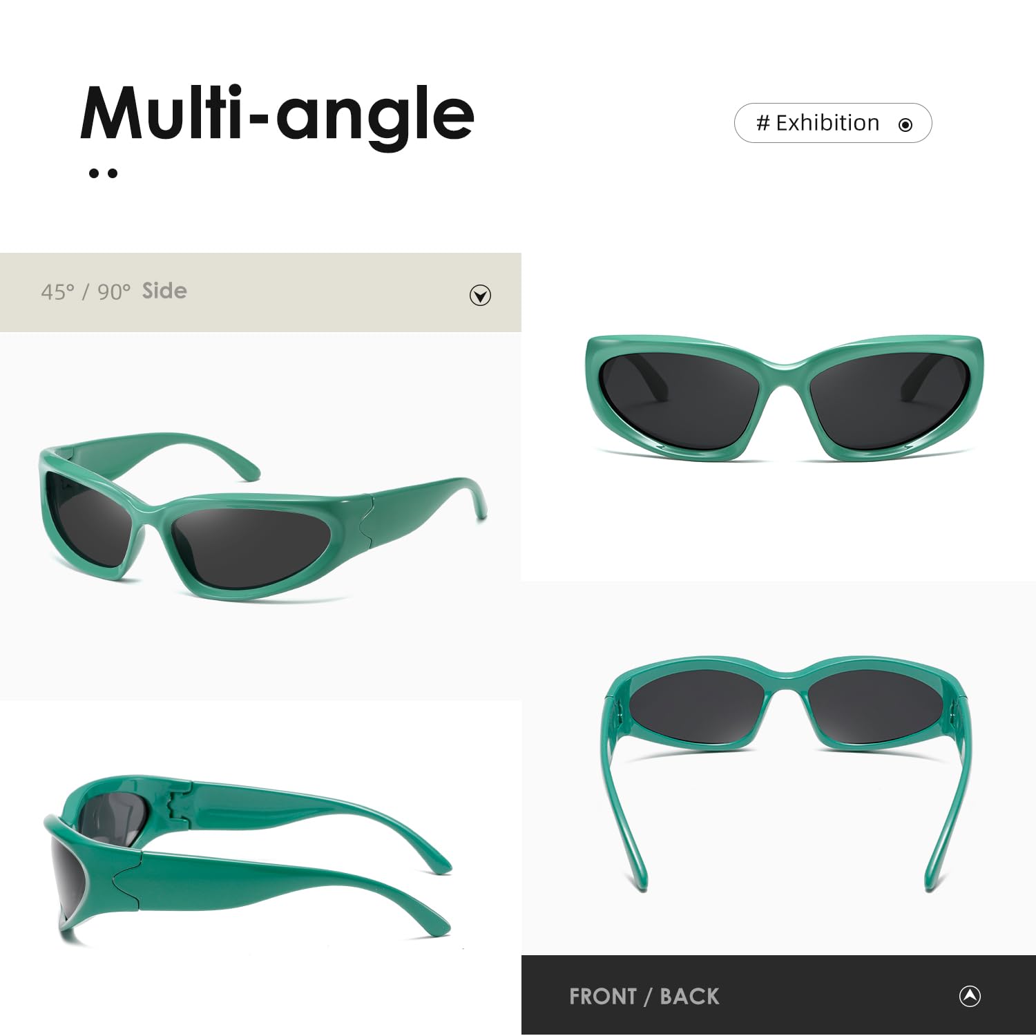 EXCLUSIVE DESIGN-We are dedicated to the development of trendy and unique sunglasses for people who pursue fashion and express their individualities,With retro wraparound eye shape,fit for all kinds of faces.