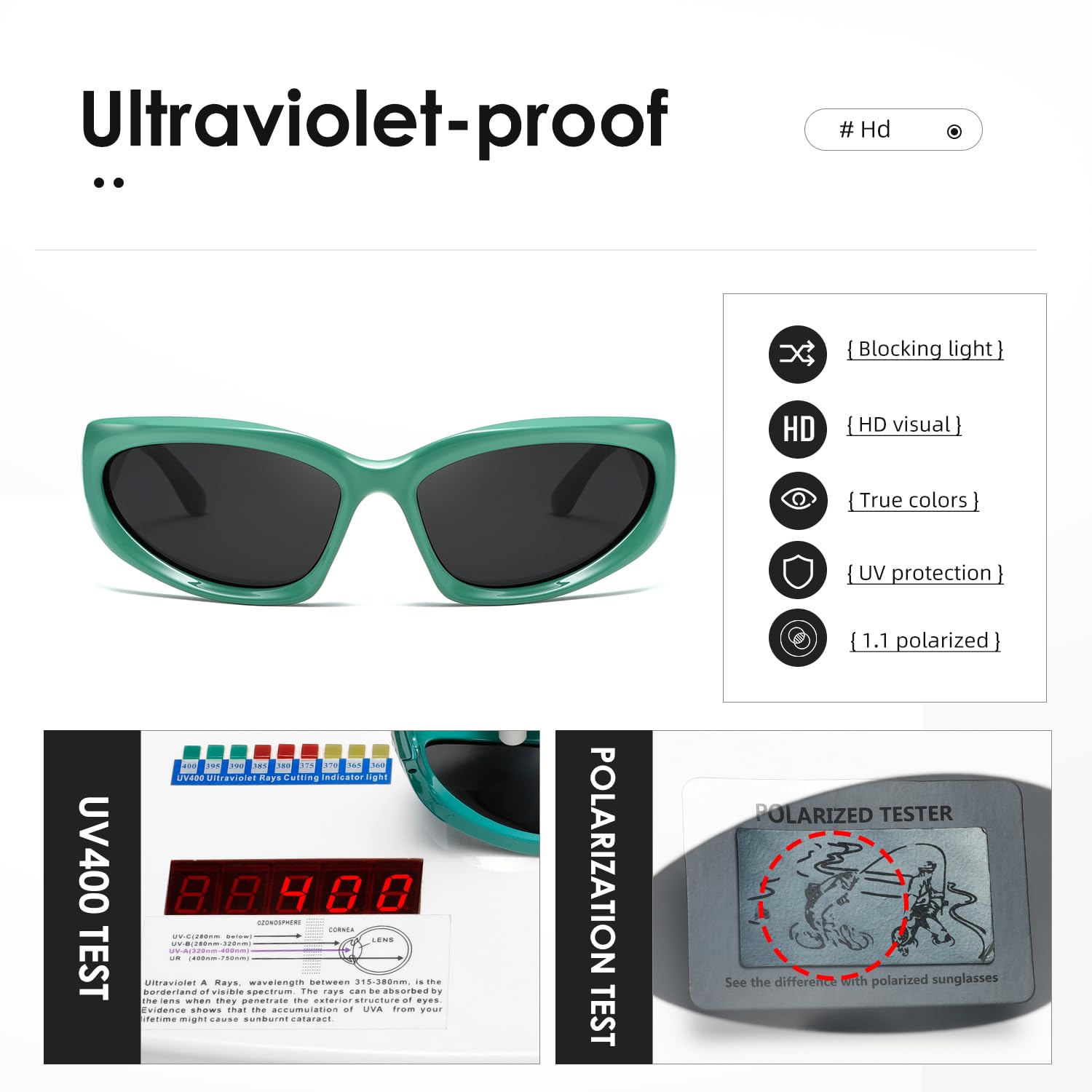 HIGH-DEFINITION UV400 TAC POLARIZED LENSES – Standard sunglasses are great for reducing overall brightness, but they don’t do much for glares, those annoying, vision-blocking bursts of light.Polarized sunglasses stop glare from reaching your eyes