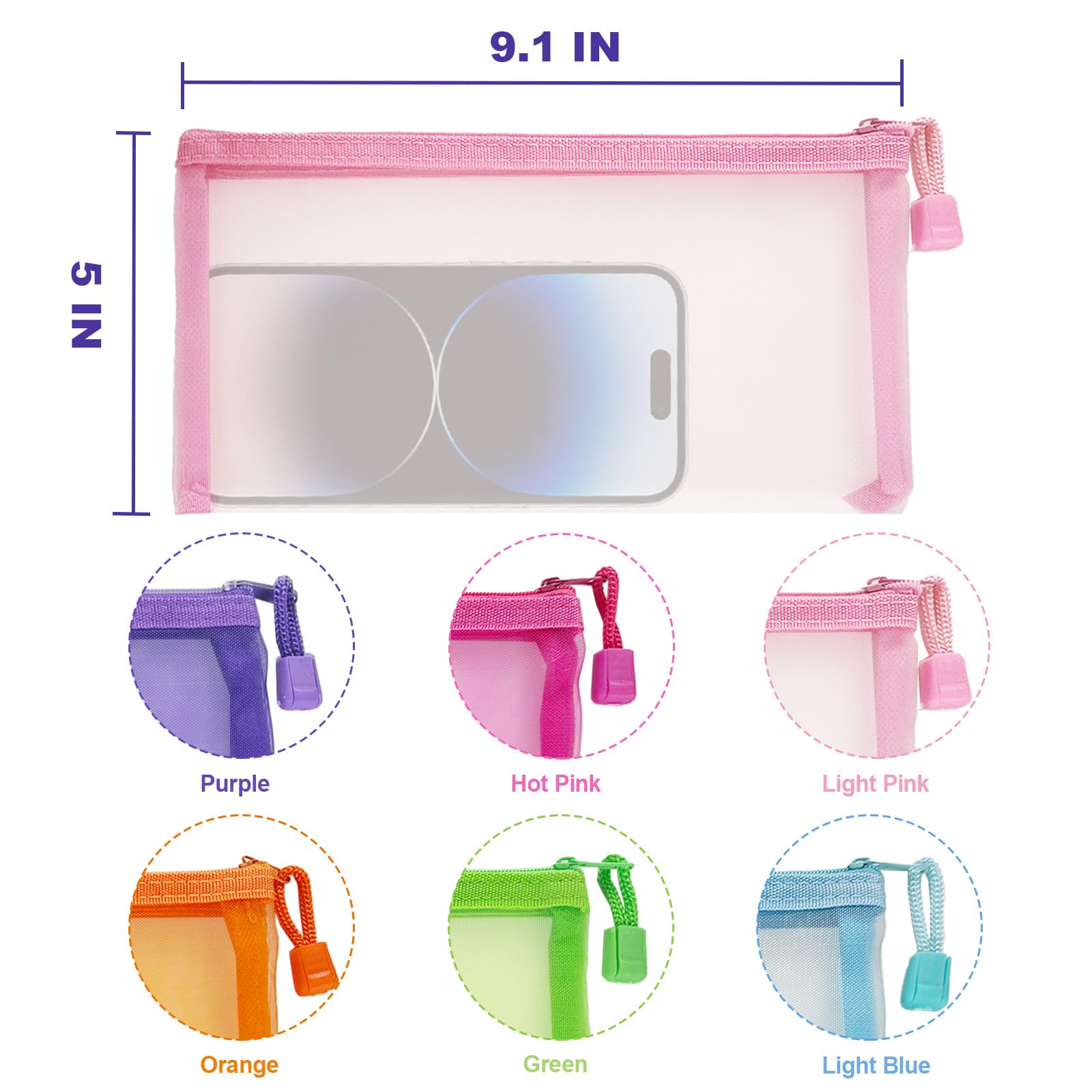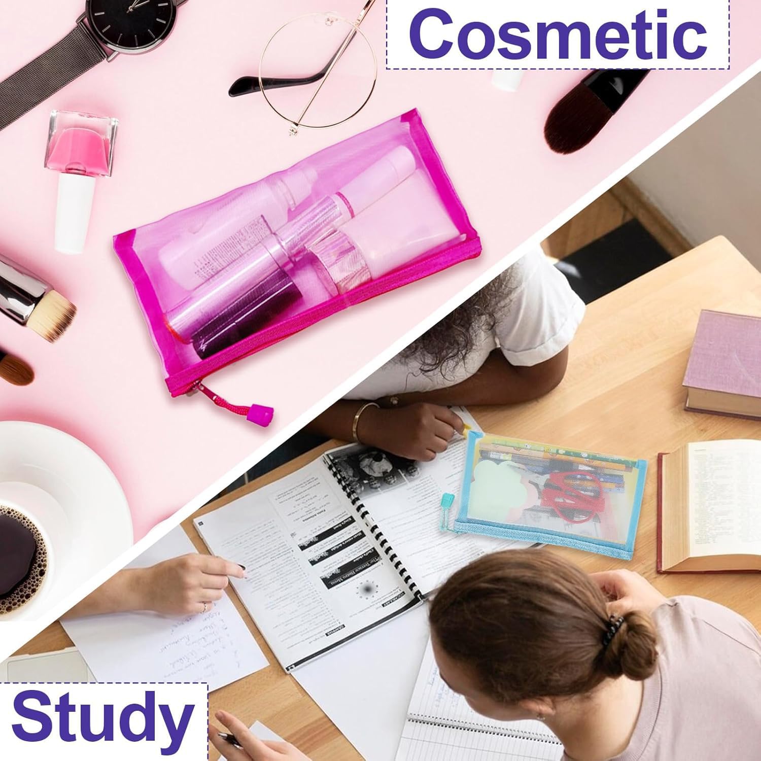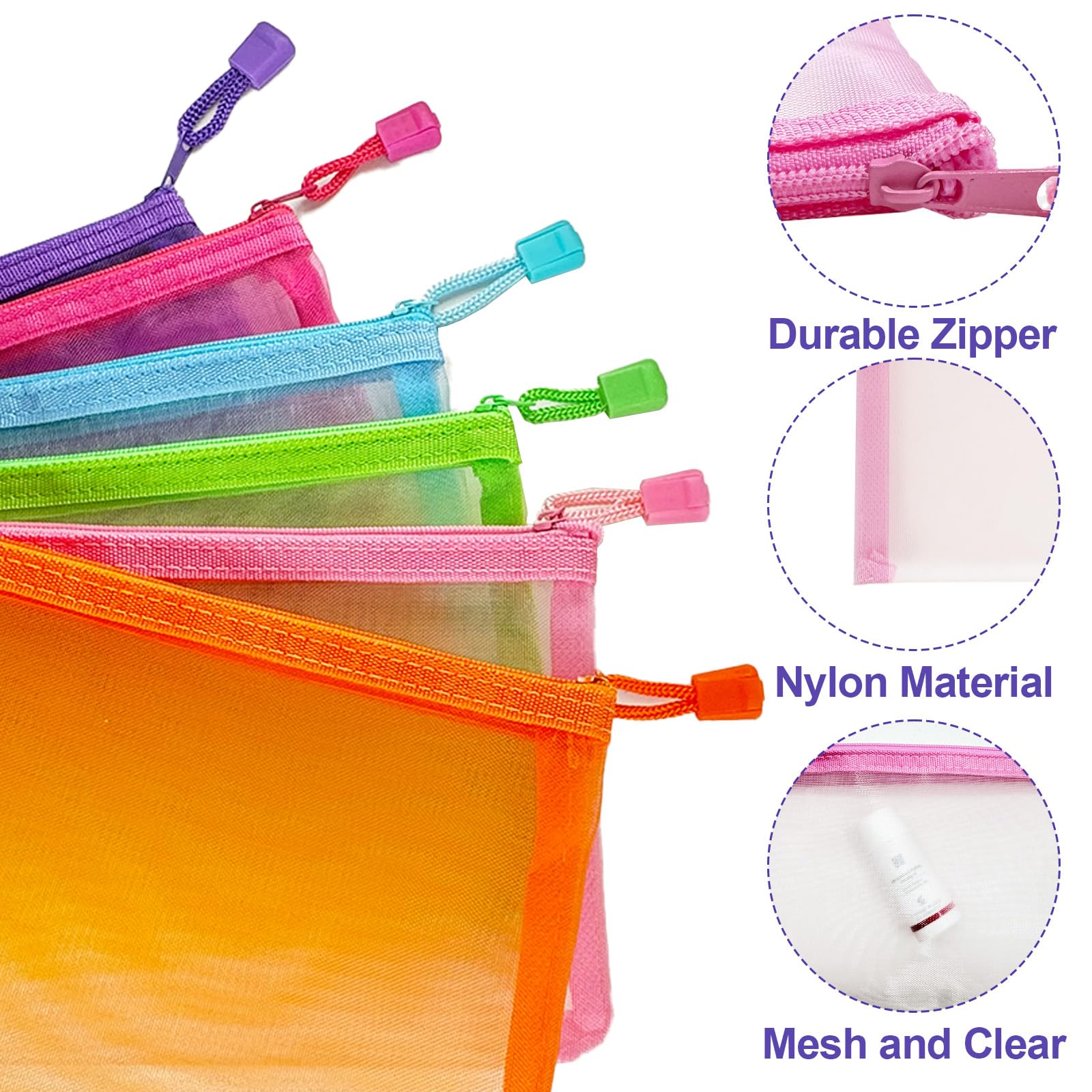 Durable Nylon Mesh Makeup Bags: These versatile mesh zipper pouch bags are crafted from high-quality nylon, providing a sturdy yet flexible option for organizing all your essentials, including makeup and toiletries, in a stylish cosmetic bag for your purse.
