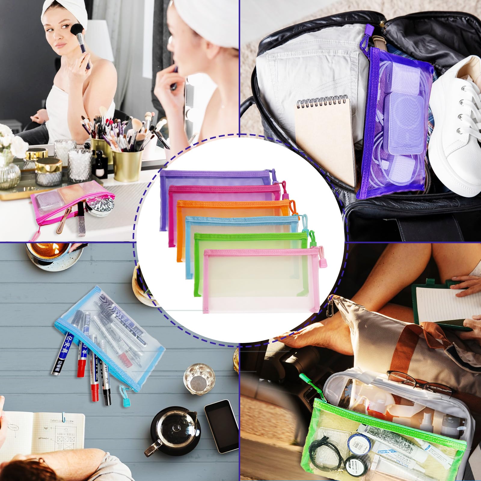 Space-Saving Purse Organizer Insert: Designed to fit seamlessly into your purse, these lightweight and flat mesh bags can be used as purse organizer pouches, helping you keep your small bags for purse organized while maximizing space in your handbag or travel pouch.