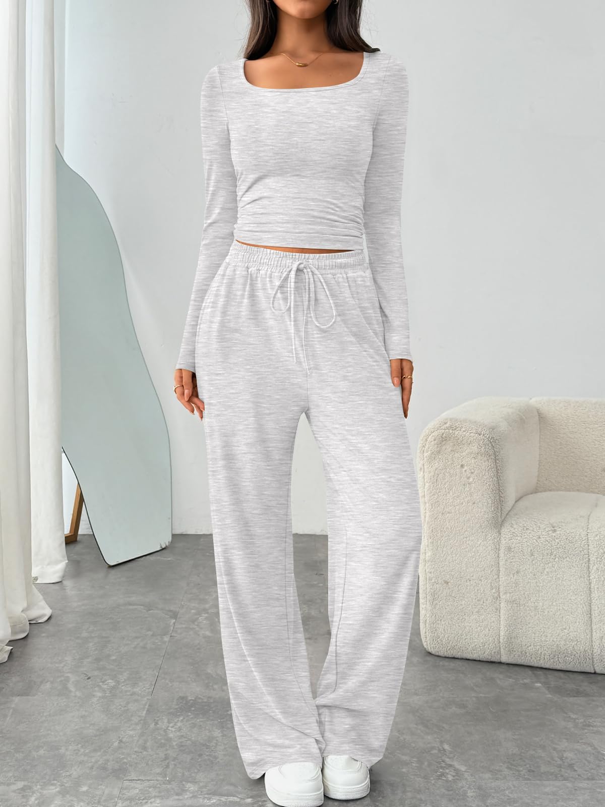 Features: The top is slightly cropped, not skin-baringโwhile side-ruching adds a cute vintage bounce. Pair the scoop neck with any necklace you love. Wide-leg pants keep it breezy, finished with an elastic + drawstring waist and 2 deep side pockets so your phone, keys, and lip balm ride alongโno purse, no problem.