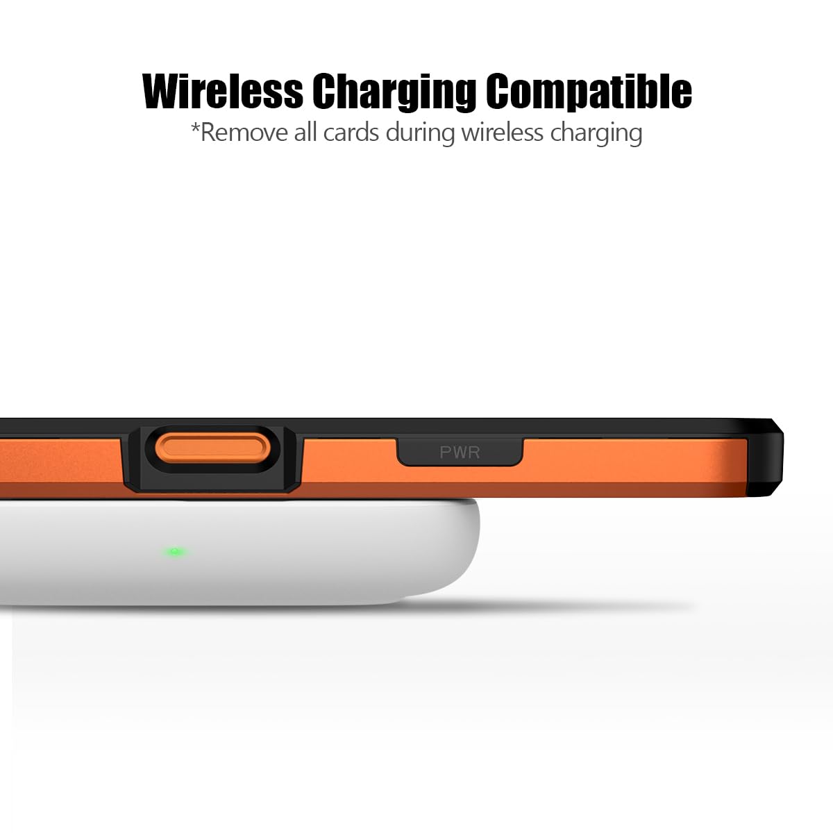 Sleek exterior is easy to slide in and out of pockets. Wireless Charging without having to remove the case. *Reminder: Please remove all cards from the hidden card slot during wireless charging.