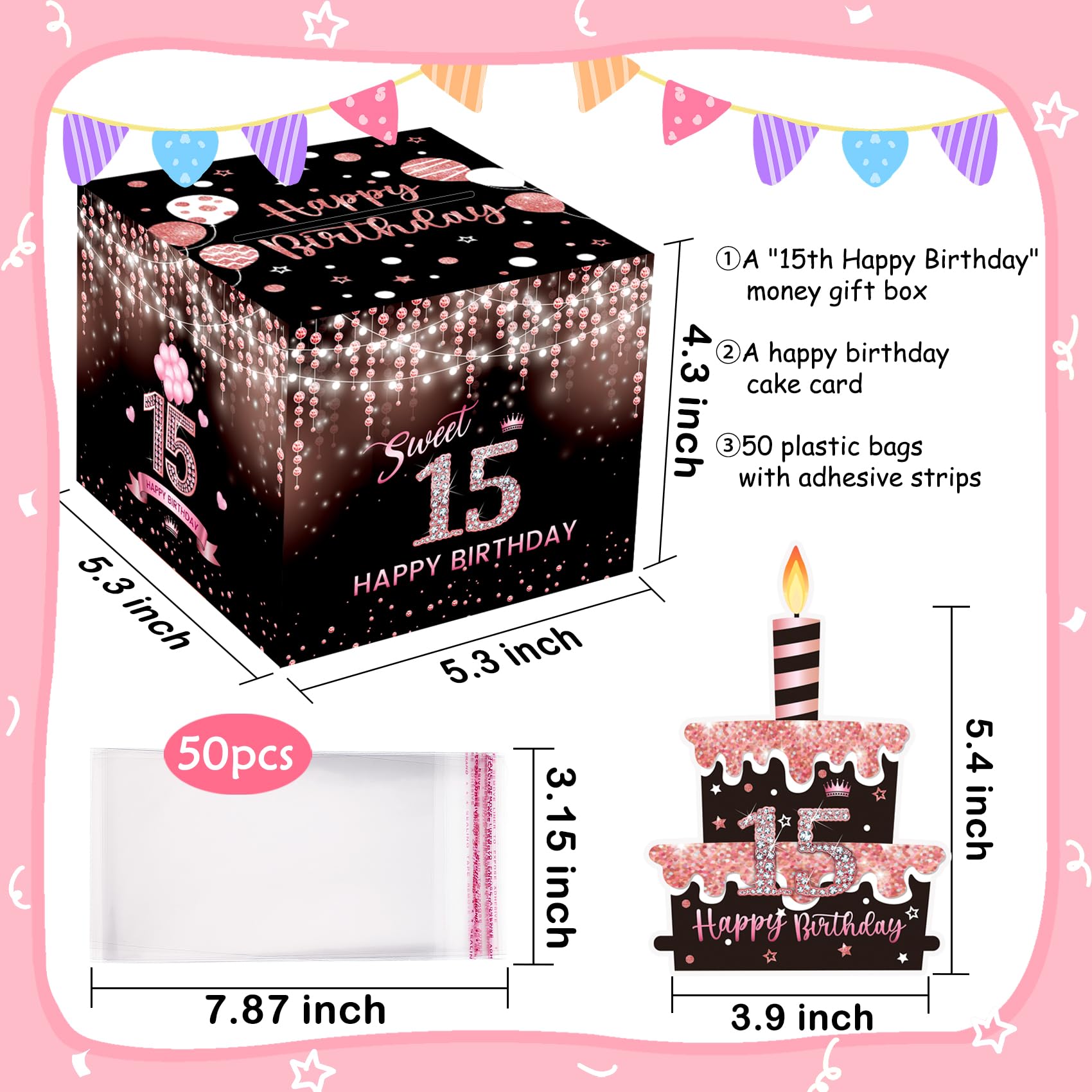 Package You Received: The surprise 15th birthday money roll box includes a beautiful 15th birthday money gift box, a exquisite happy birthday cake card (with adhesive strips for securing transparent bags), and 50 transparent bags with adhesive tape. You can DIY this money gift box yourself and put any cash in it as a cash gift to your family and friends. You can make cash giving more interesting, which can surprise the recipient and leave some lasting impressions.