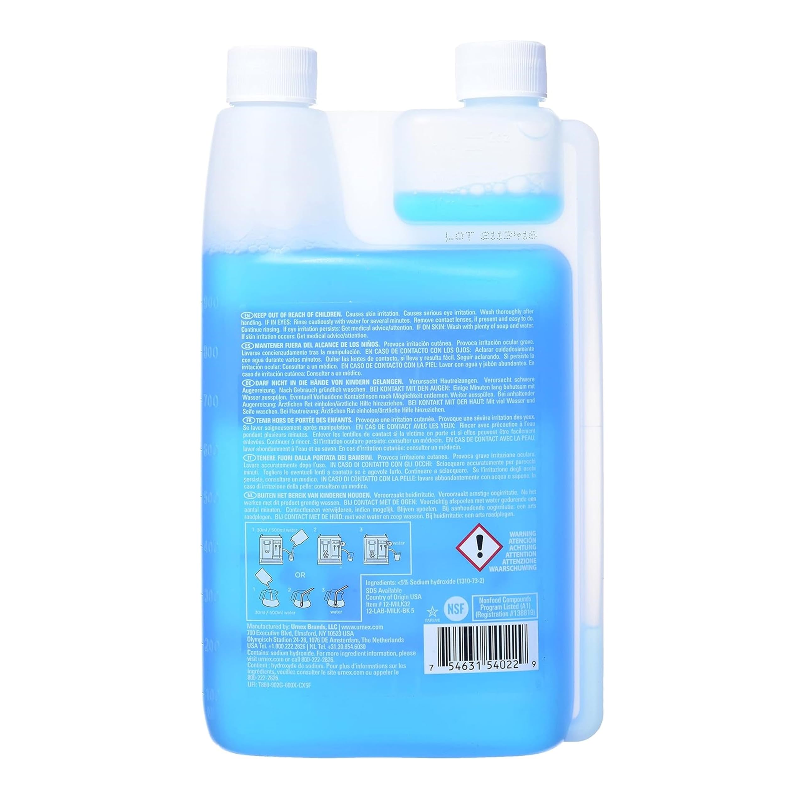Urnex® Rinza breaks down milk protein buildup. Cycles through auto frothers for easy cleanup. Also cleans traditional steam wands and steel pitchers. The built-in measuring device delivers over 30 uses per bottle.
