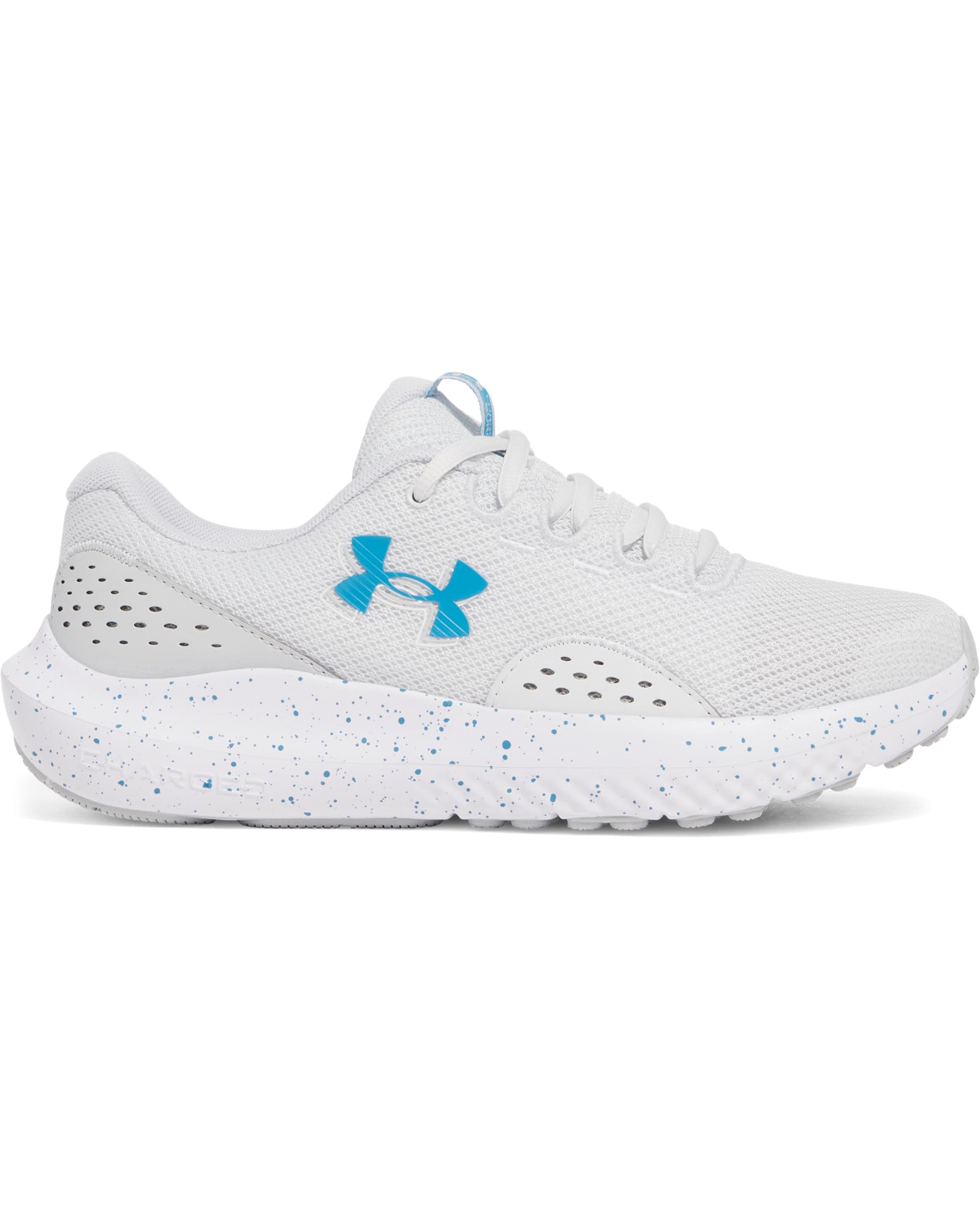 Material and fit - Under Armour Women's Charged Surge 4 gym shoes have a regular fit with standard tie laces. UPPER: 82% Textile, 18% Synthetic~OUTSOLE: 100% Rubber