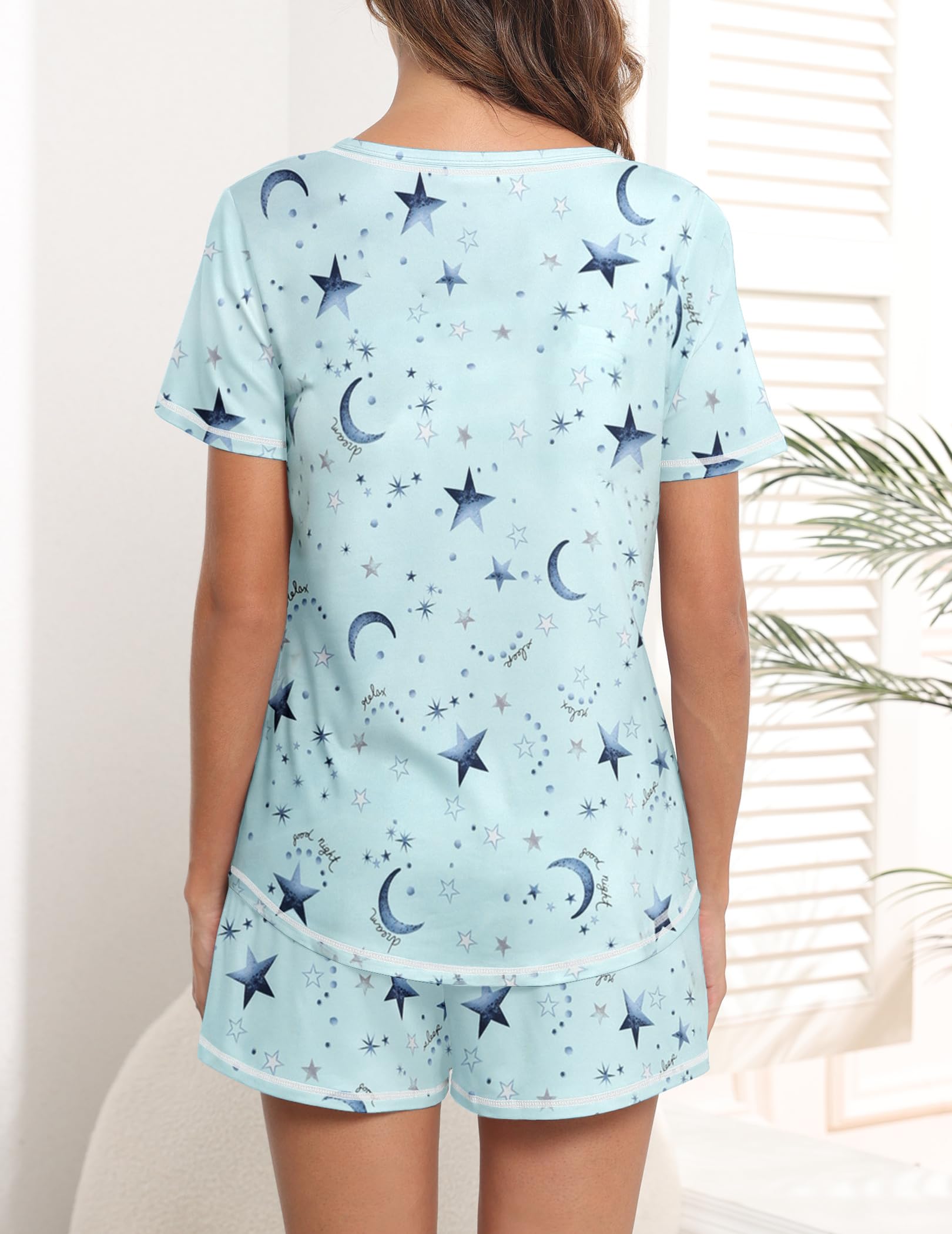 Design: The pajama top features classic chest pocket and V neck, with exquisite hemming workmanship; the pajama shorts features adjustable drawstring and pockets. Loose fit lounge sets, cute and comfy pajamas for women and teens girls