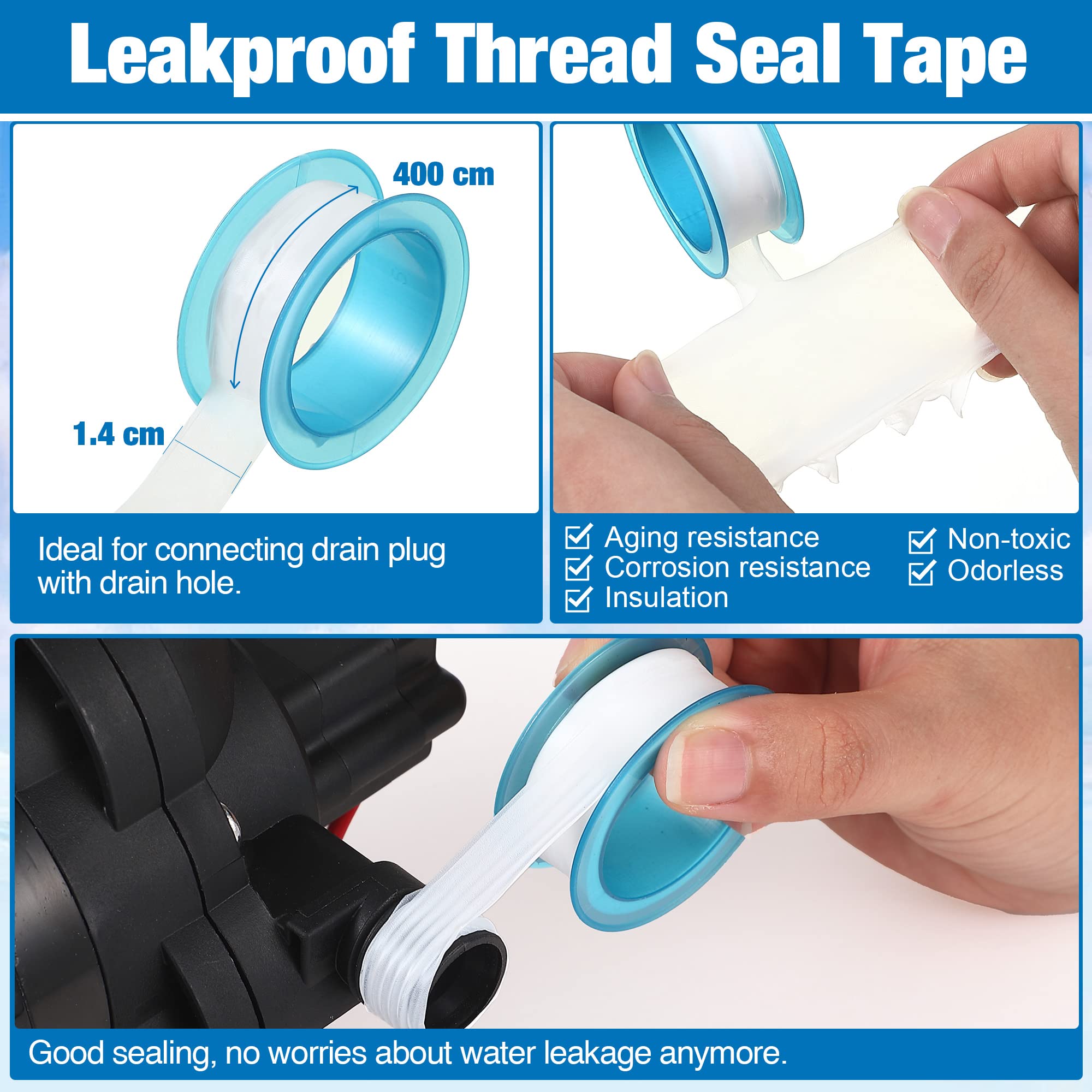 Anti Leakage: the RV plumbing fittings include a thread seal tape, wrap it a few turns water pump outlet then fix the elbow adapter to get a unleak connection