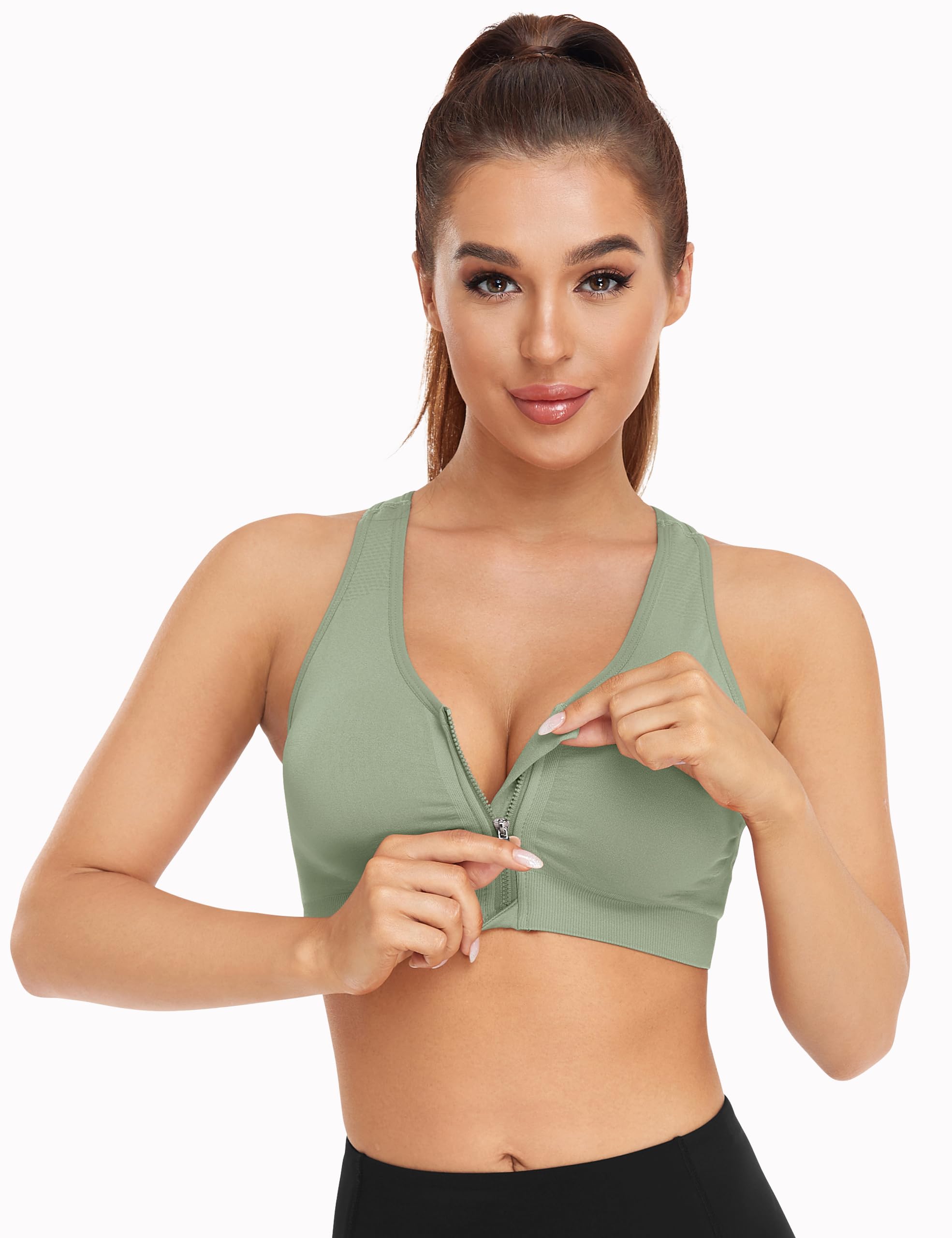 Front zipper closure-Easy to put on and take off with zipper front closure. Anti slide Zipper protect from sliding down when doing exercise. Protective layer of clothe covers the zipper on the inside to prevent scratching your skin