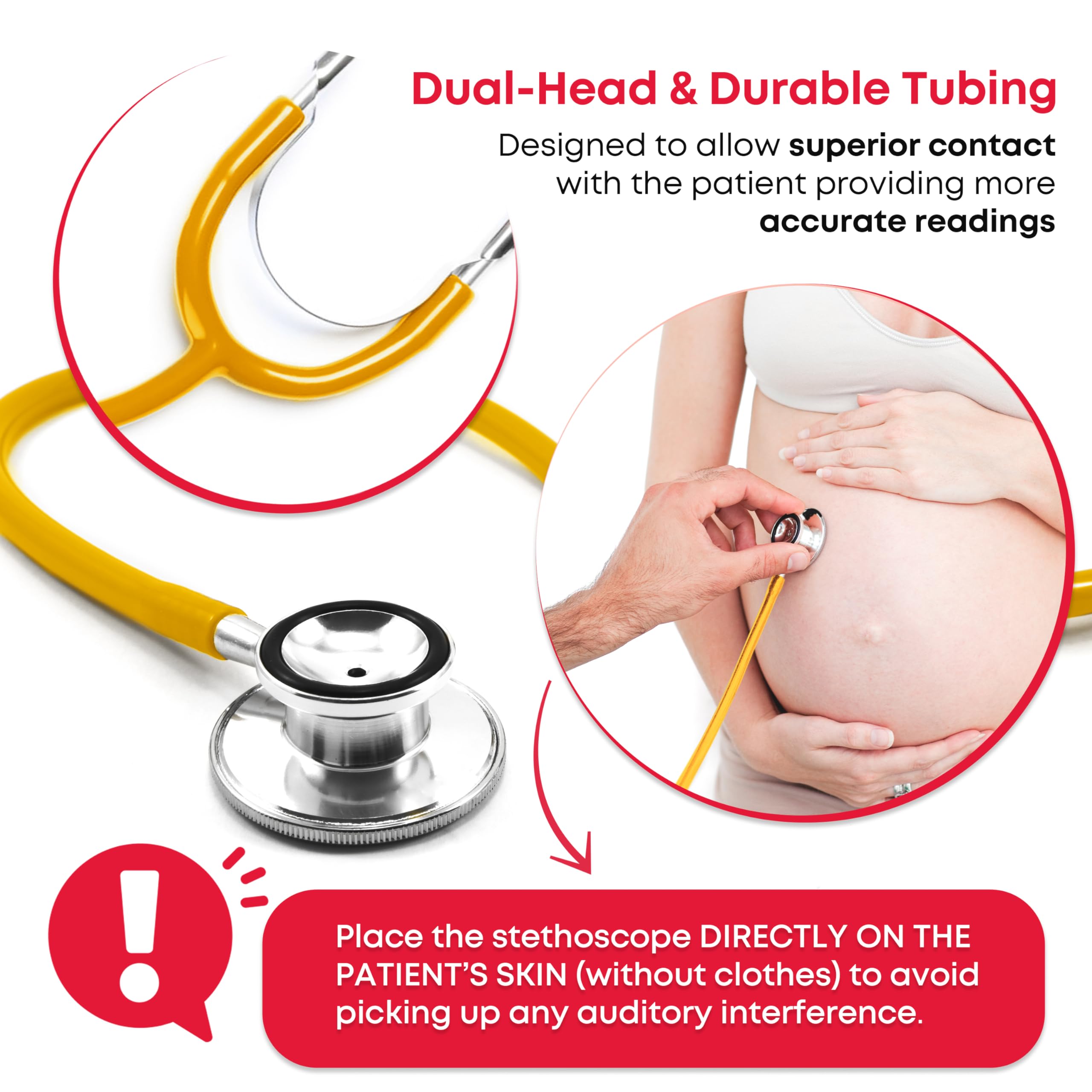 DUAL-HEAD - Allows for use on patients of all ages and is made for professionals and students. The ear tubes are flexible and adjust for comfort. The solidly constructed chest piece allows for superior contact to provide accurate readings and evaluations.