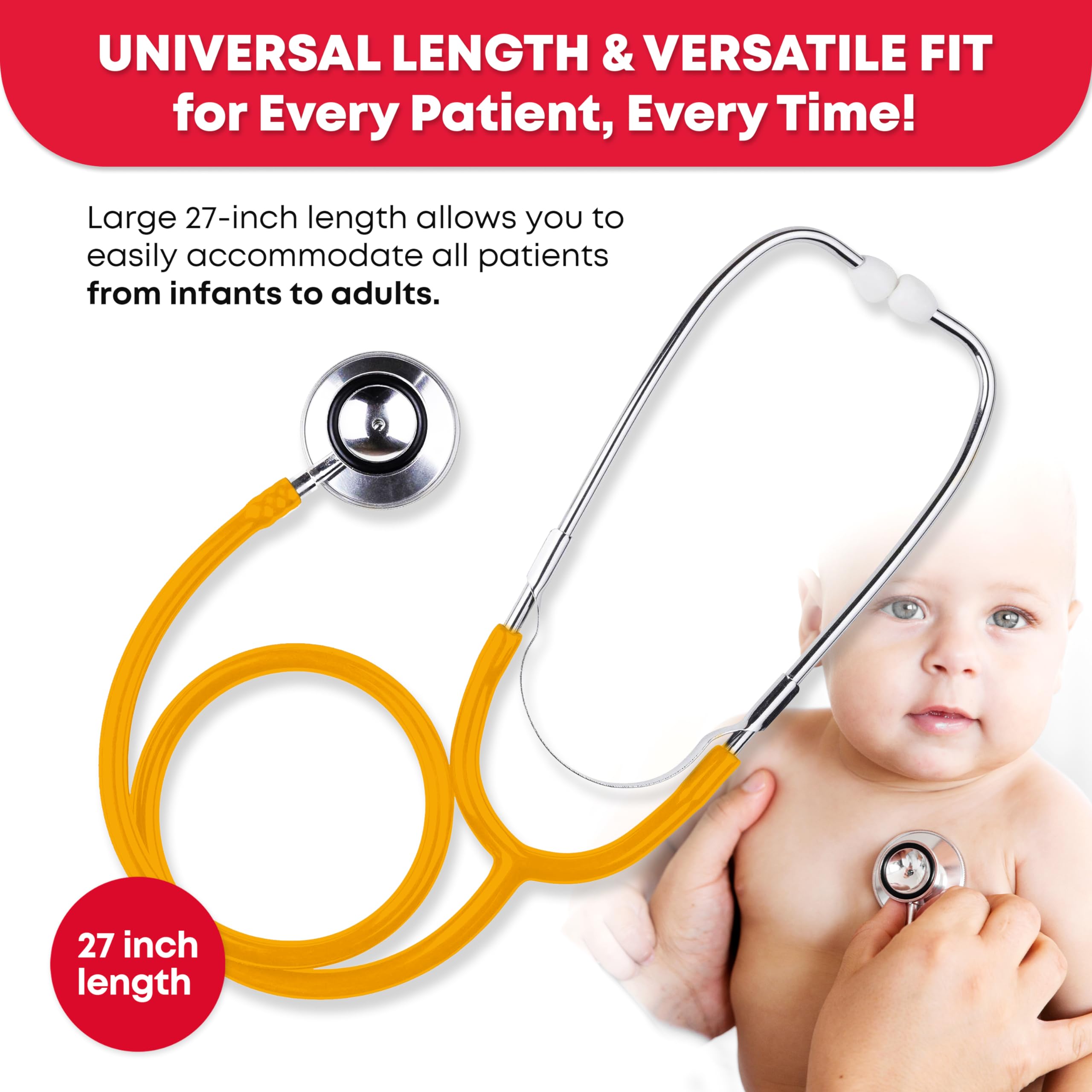 ANATOMICALLY DESIGNED - The specially designed headset is made to match the angle of the ear canal for a superior fit that allows for better performance. Large 27-inch length allows you to easily accommodate all patients from infants to adults.
