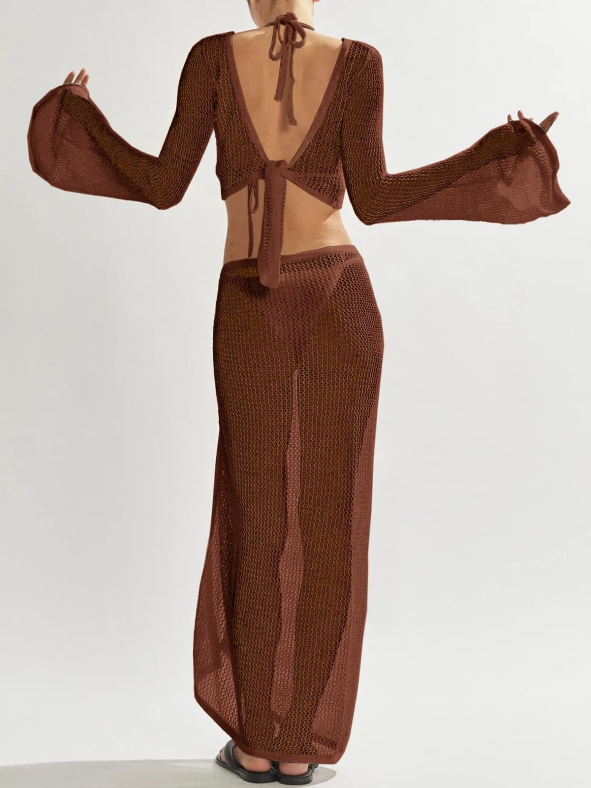 cover up tops:wear both front and back, showing different features,v neck,sexy and cute,long trumpet sleeves show the comfort of beach time,