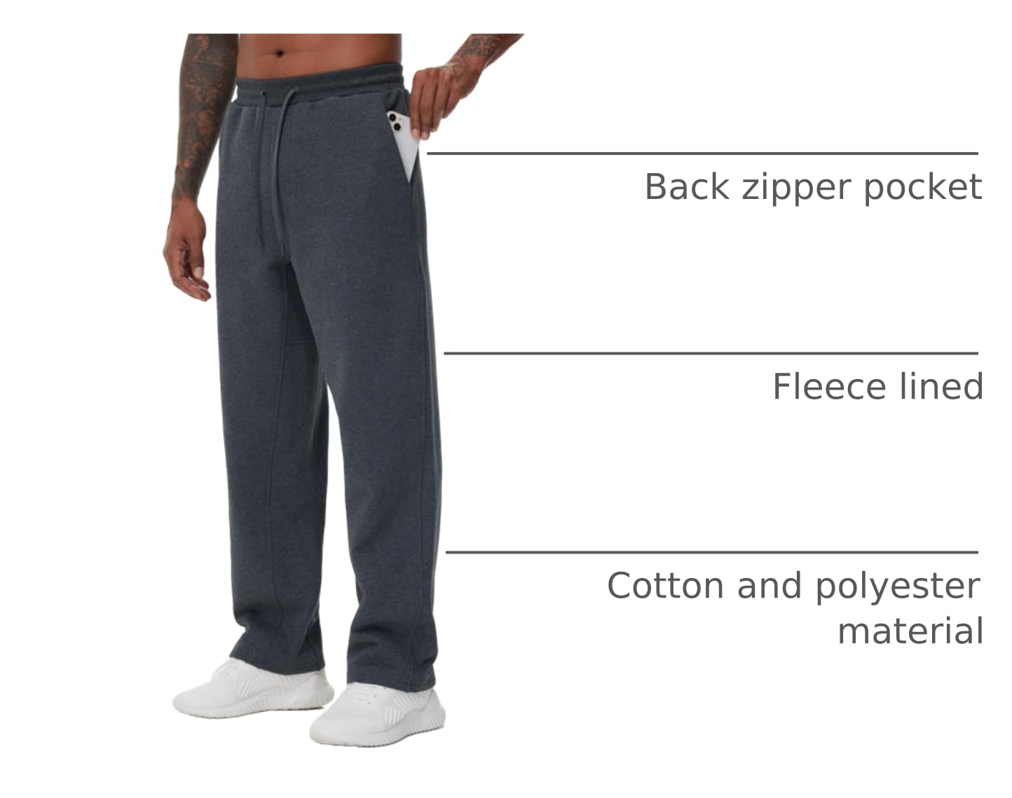 Soft & Comfortable-50% Cotton and 50% Polyster constitue the men's Sweatpants,its also get a fleece lined on it ,wearing comfortable and warm.