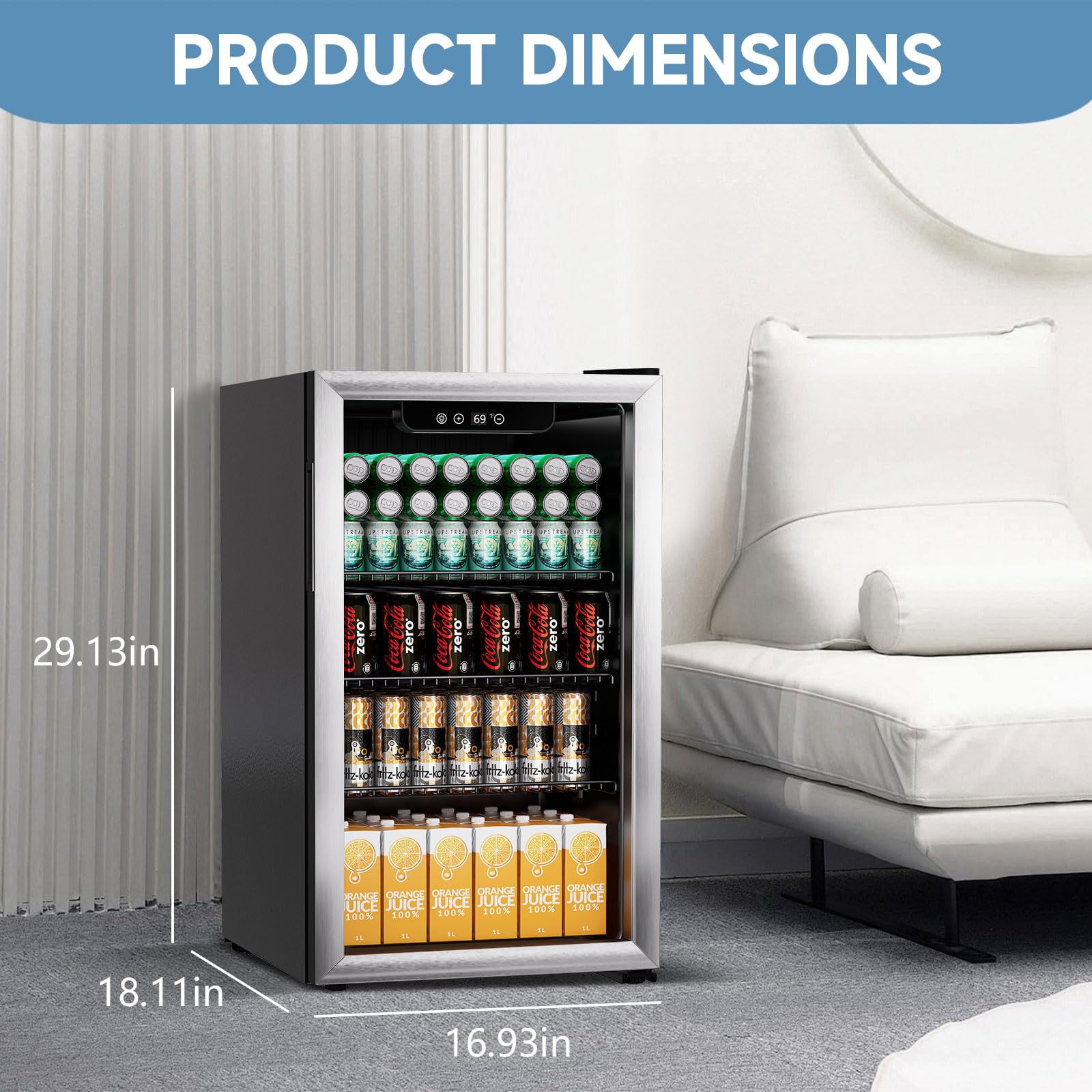 Super Large Storage Capacity: Featuring an internal space of 3.1 cubic feet, it can hold up to 110 cans of beverages. Matched with removable shelves, it flexibly fits different-sized drinks like canned and bottled ones.