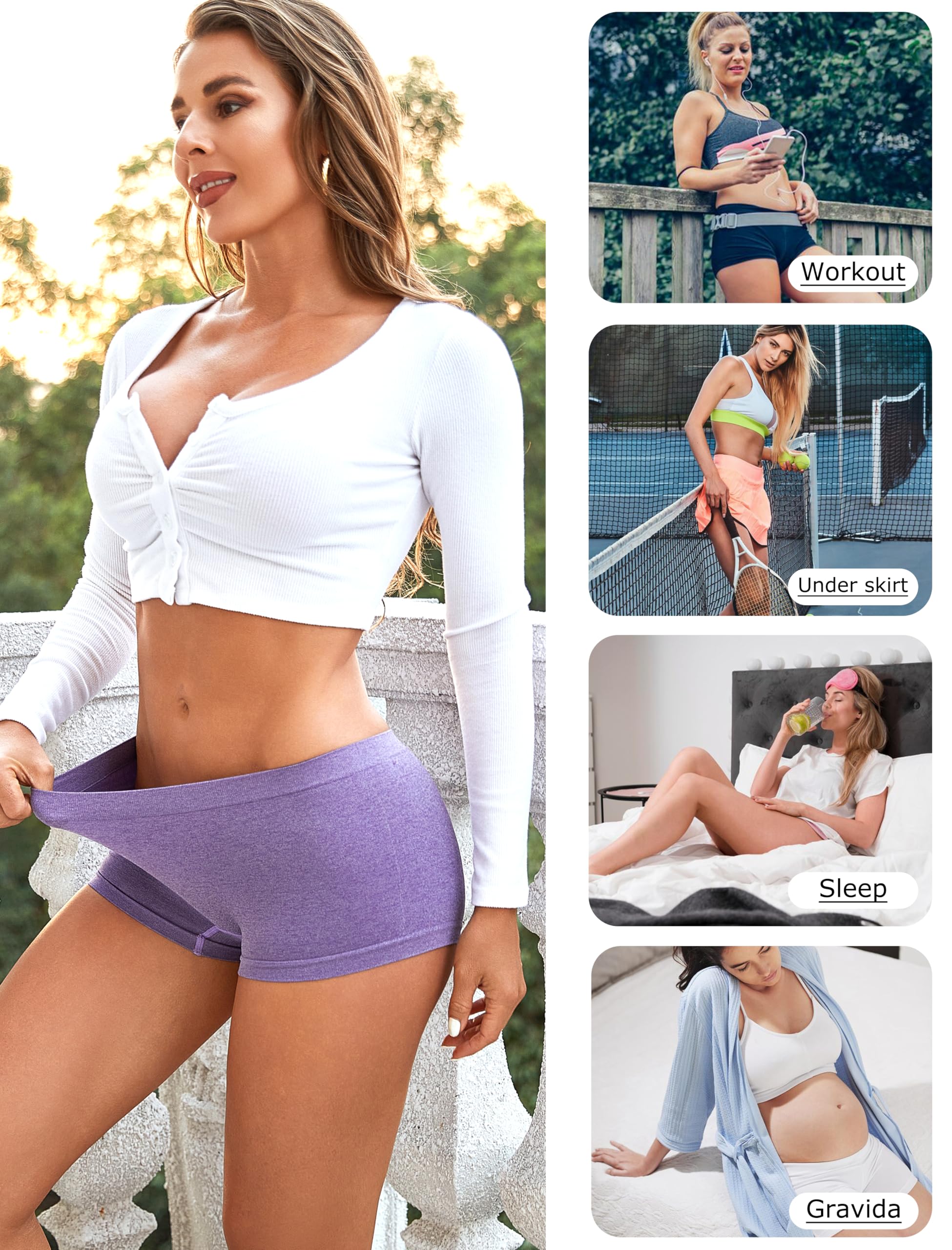 Boxers for women : Classic solid color boxer shorts style, they have good stretch but not baggy, they stay where they should no matter how you bend fold stretch or anything. It is suitable for almost all occasions, wear sleeping in or just lounging around the house, workout, gym, running, yoga, athletic, booty, under dress, under skirt and so on.