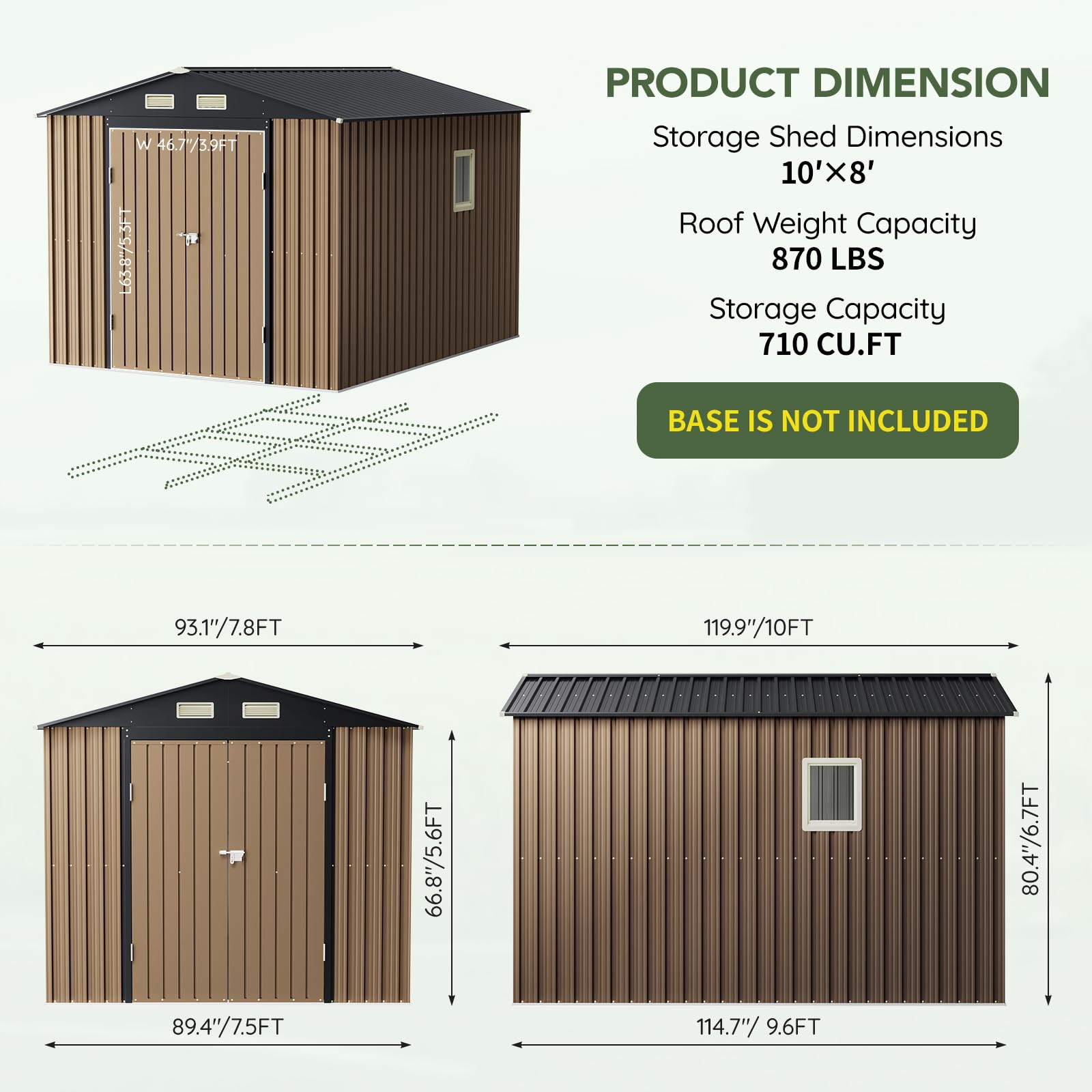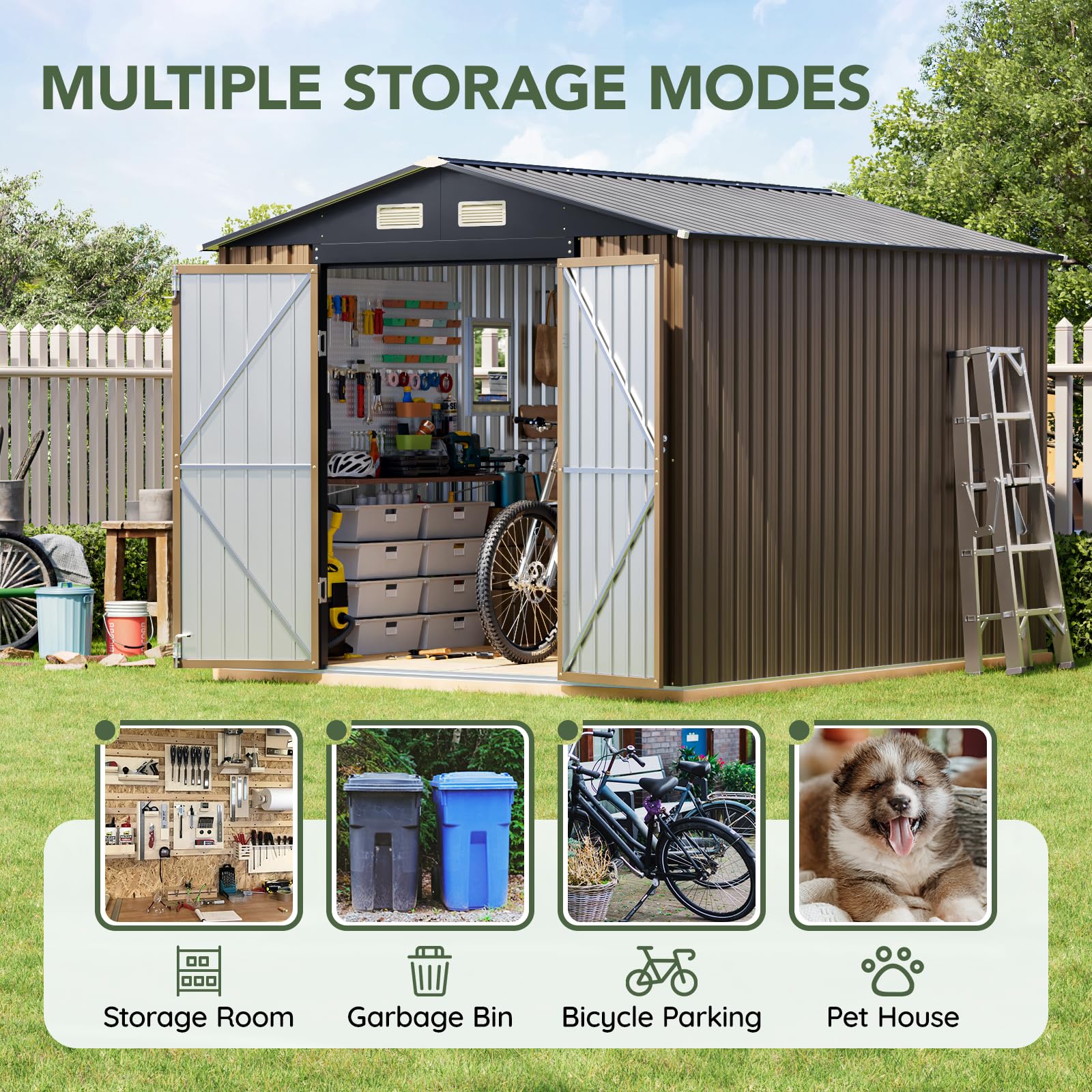 Spacious 10x8 FT Storage Capacity – Provides ample space for storing bikes, lawn tools, garden supplies, and seasonal equipment. Perfect for backyard, patio, or garden use.