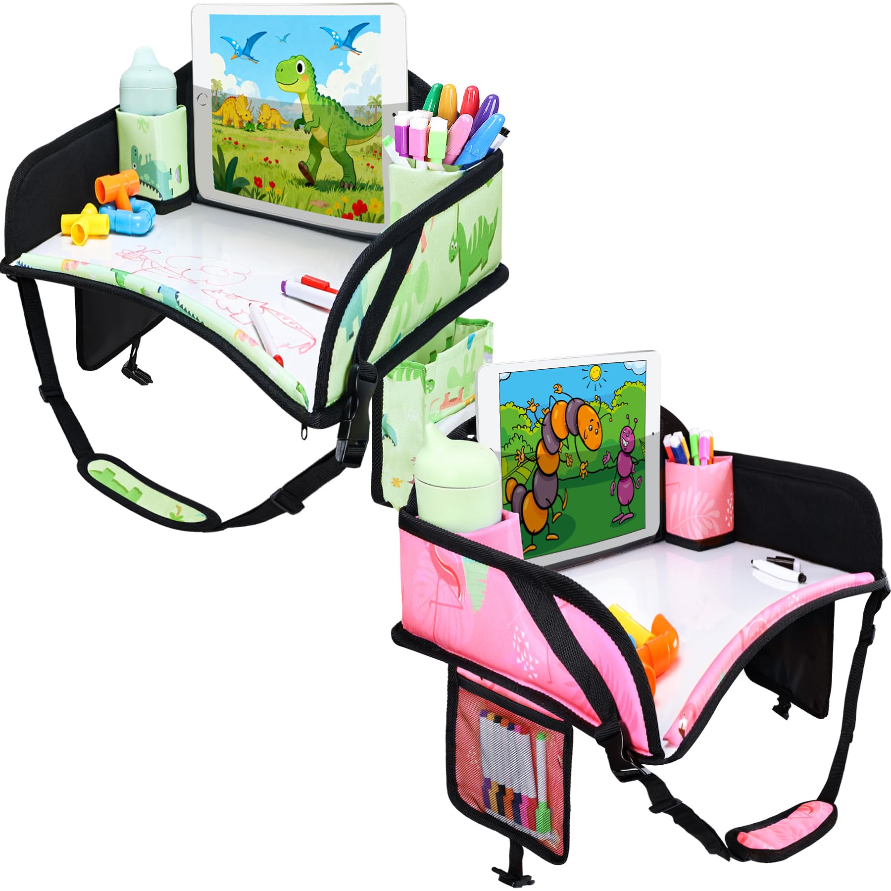 Multi-Function Travel Tray For Kids Car Seat: Multiple mesh storage pockets keep your child’s toys, snacks and water bottle organized and within reach. The dual-purpose adjustable strap secures toddler travel tray in place and be used as a convenient carrying strap for travel