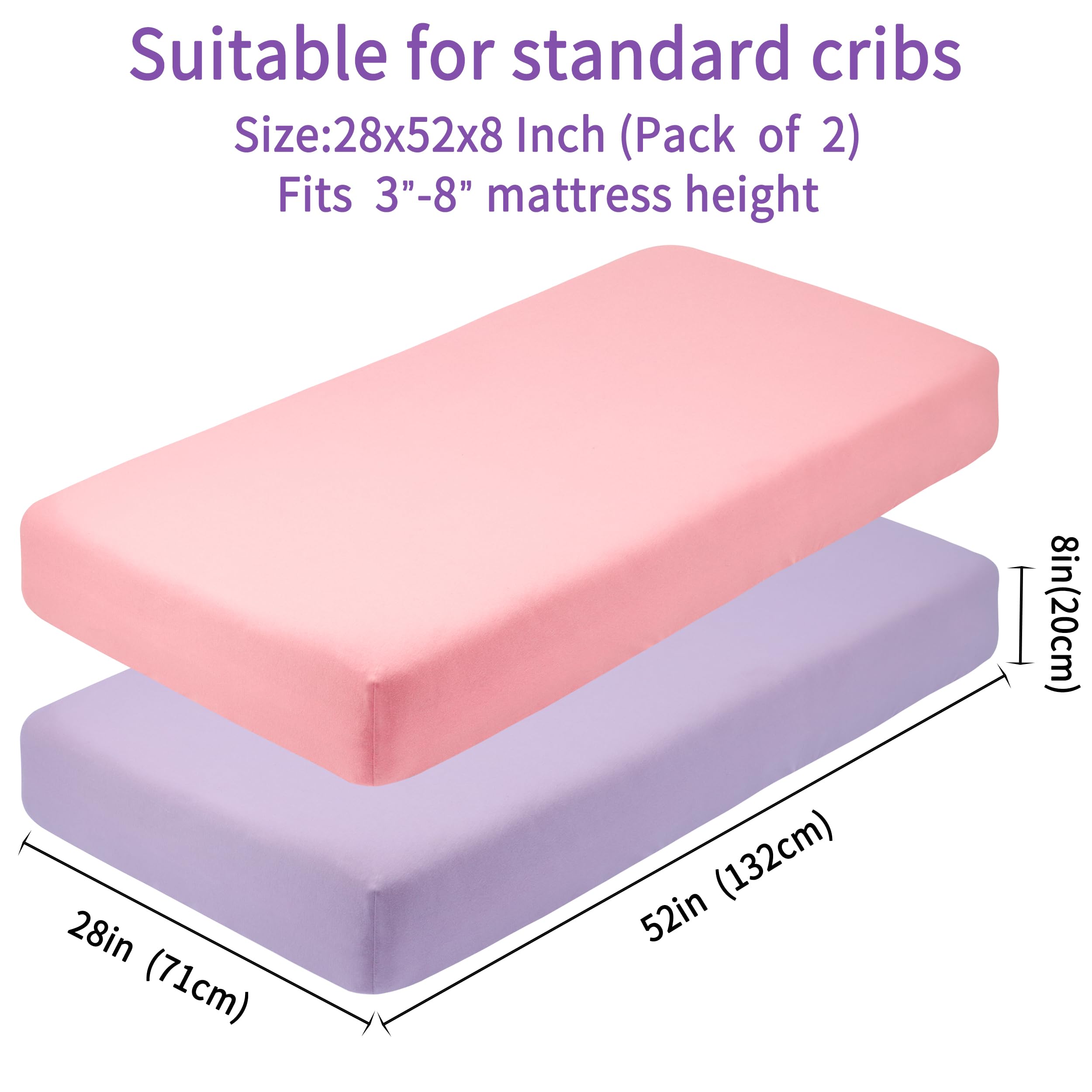 PERFECT FIT: The crib sheet measures 52" X 28" X 8". The elastic bandage wraps around to ensure that our crib mattress sheets fit your crib mattress snugly, not loose, but flat, giving your baby a comfortable bedding.