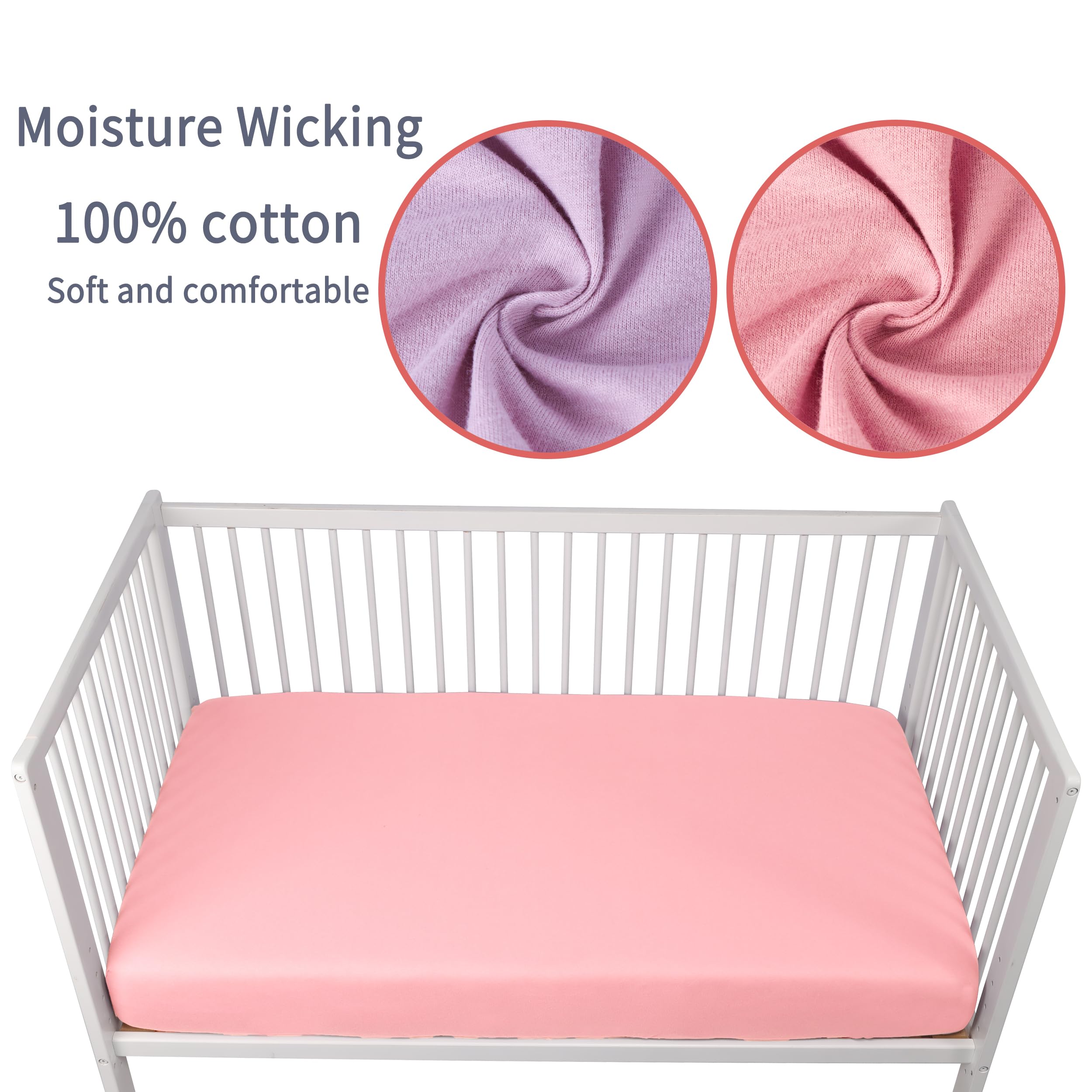 EASY CARE - This crib sheet is machine washable and retains its shape after washing, moms don't have to worry about the sheet shrinking, fading or pilling. Each pack contains two fitted crib sheets so you always have one on hand.