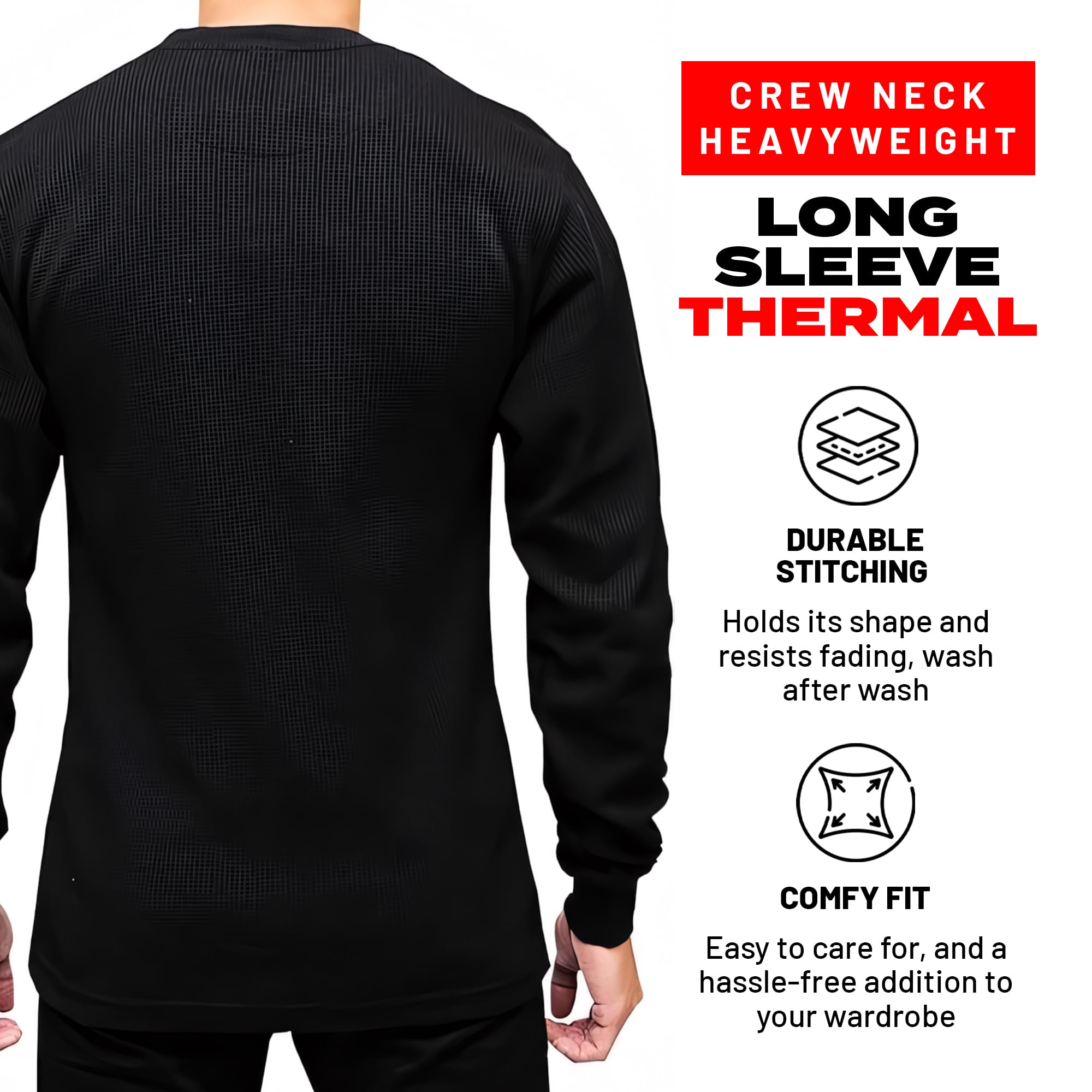 Description Stay warm, comfortable, and stylish with the Access Men's Thermals Heavyweight Long Sleeve Thermal Crew Neck Top—the perfect blend of durability, functionality, and all-day comfort. Crafted from rugged, heavy-duty waffle knit fabric, this waffle thermal long sleeve men is built to endure cold temperatures while maintaining breathability and flexibility. The high-quality construction ensures long-lasting wear, making it an essential addition to your fall and winter wardrobe. Designed for superior insulation, the ribbed collar and snug wrist cuffs help seal in warmth while blocking out chilly air. The slightly elongated sleeves ensure a secure fit, preventing them from riding up and accommodating various arm lengths. Whether you're layering for extra warmth or wearing it solo, these mens long sleeve thermal shirts offer an ideal fit without feeling bulky or restrictive. Made from shrink-resistant fabric with a subtle stretch, our mens thermal tops long sleeve retains its shape and softness even after multiple washes. Its versatile design makes it perfect for outdoor activities like hiking, camping, or tailgating, as well as for lounging at home. Pair this mens waffle thermal long sleeve shirt with jeans for a casual look or layer it under a jacket for added warmth in extreme cold. Whether you’re braving the elements or relaxing indoors, the Access Men's thermal waffle shirts for men deliver reliable warmth, durability, and everyday comfort—making it a must-have for any cold-weather wardrobe.