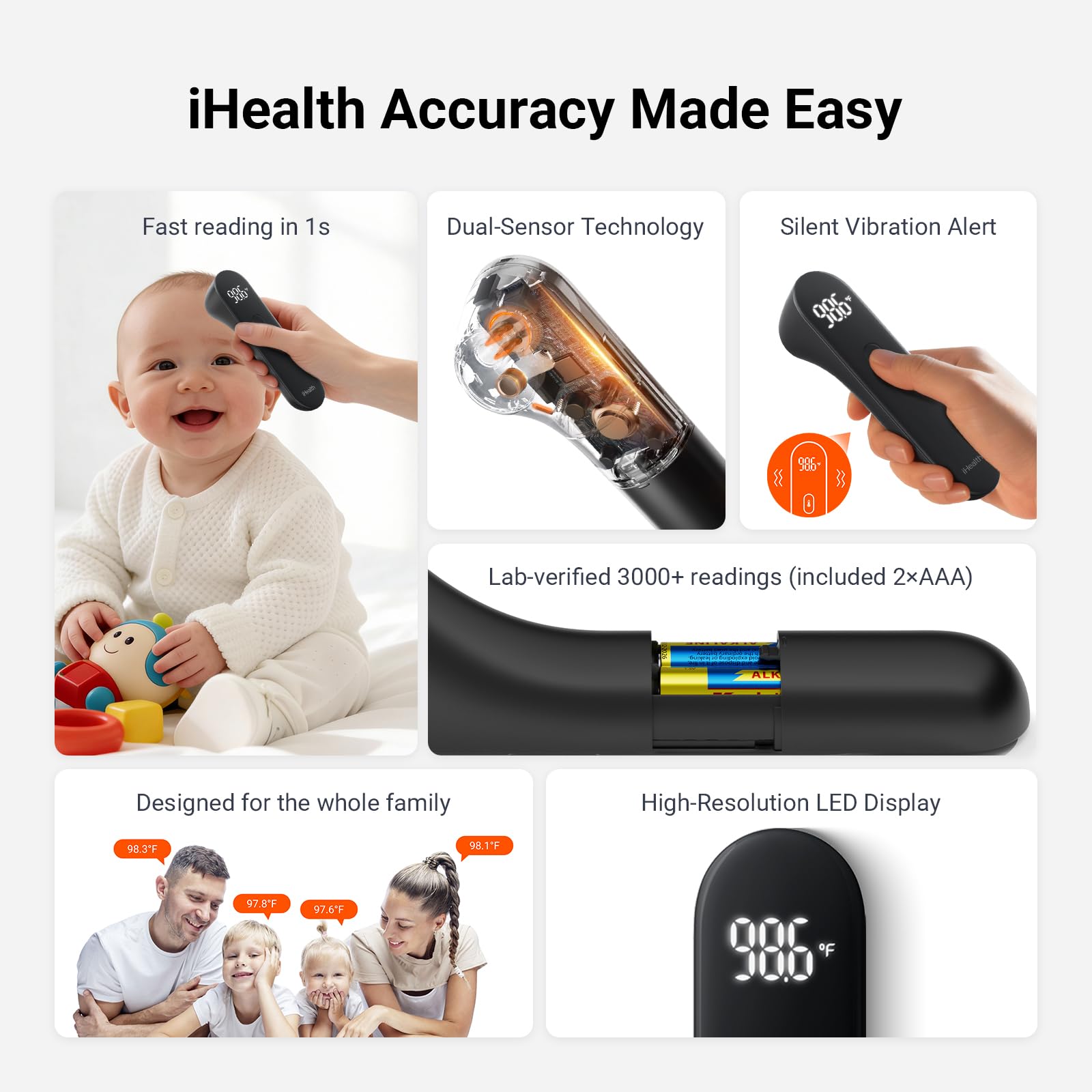 What You Get: 1 iHealth PT3 thermometer, 2 AAA batteries, 1 Instruction manual, 1× Quick start guide, and our worry-free 12-month warranty with friendly California-based customer service.