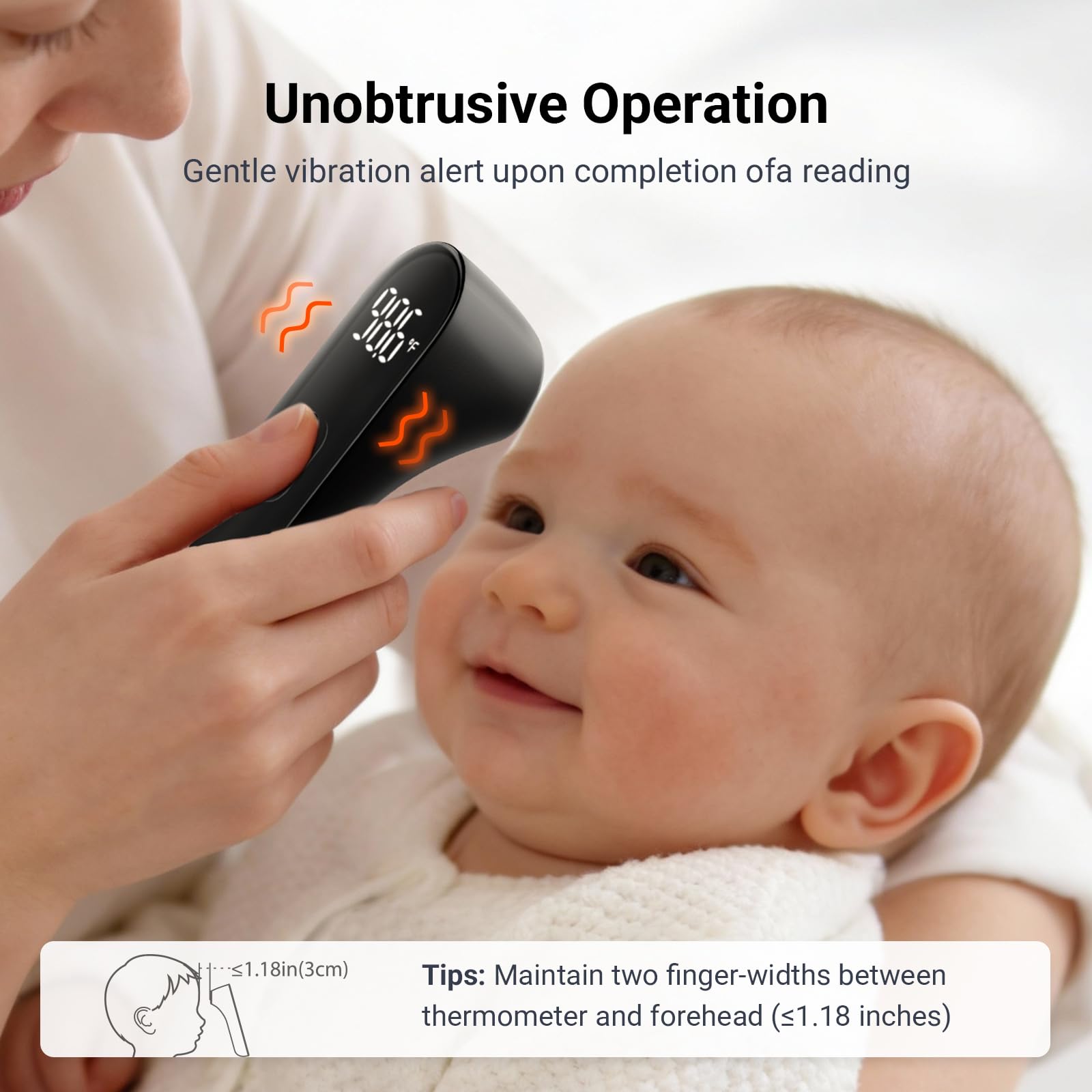 Simple, Fast, Clear, and Quiet: With its intuitive single-button control design, the iHealth PT3 thermometer reads and displays the temperature in just one second on its easy-to-read, extra-large LED display, even in the dark. Once a temperature reading is captured, the PT3 will give a gentle vibration notification.