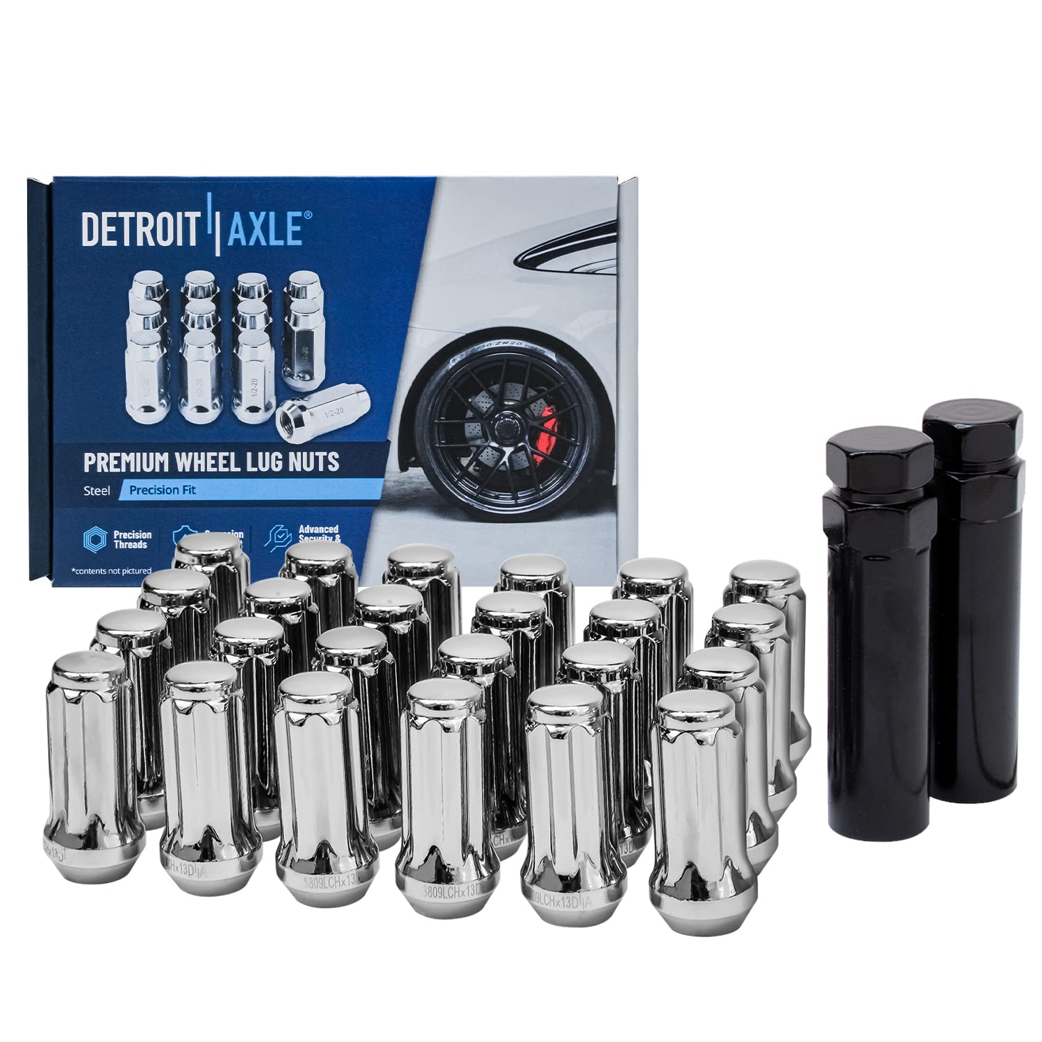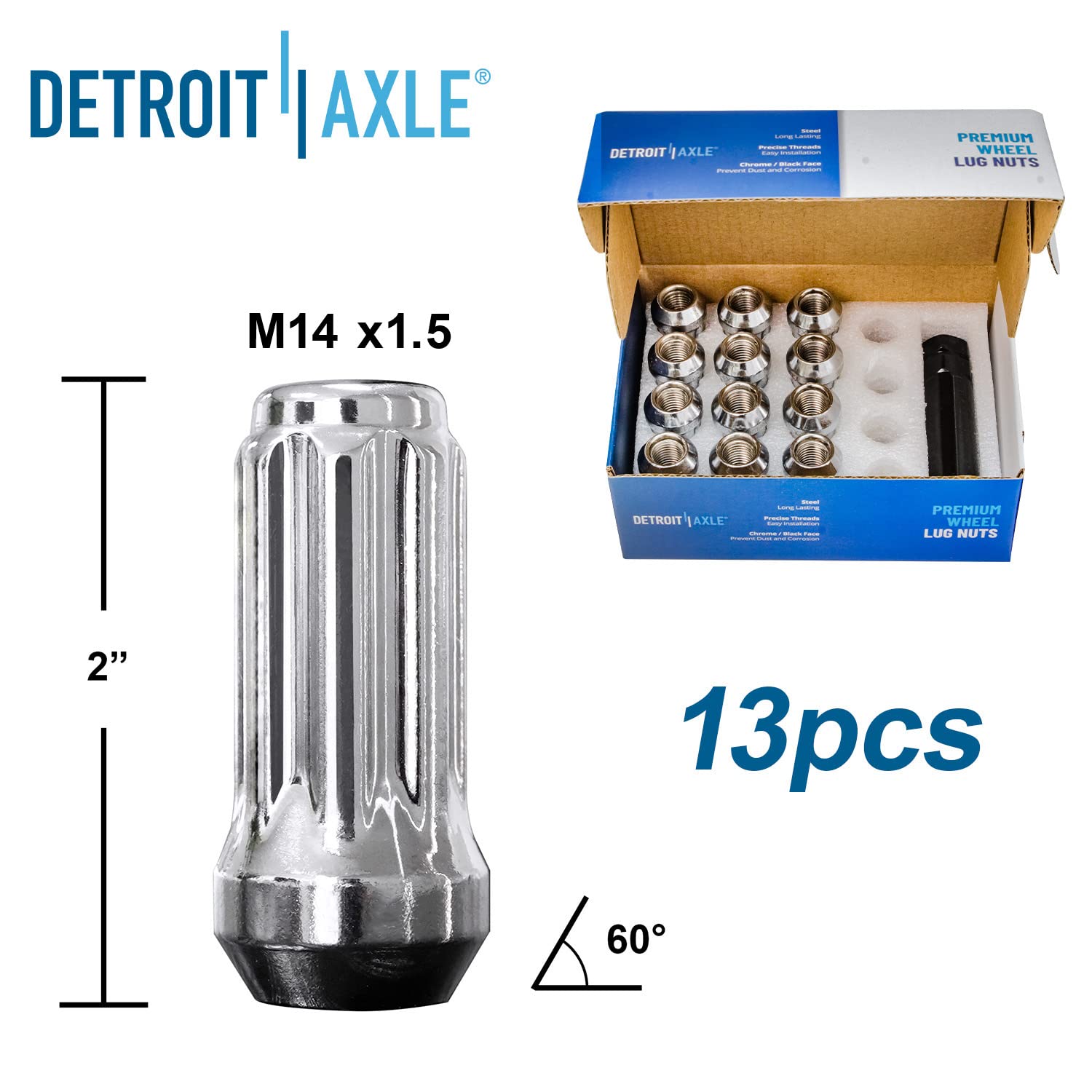 Lug Nut Specifications: Thread size: 14mm x 1.5| Overall Height: 2 inch| Diameter: 0.91 inch| Seat Style: Conical Seat - 60 degree| Material: Steel| Exterior Finish: Chrome| Package Contents: 24pc Wheel Lug Nuts + 2pc Key