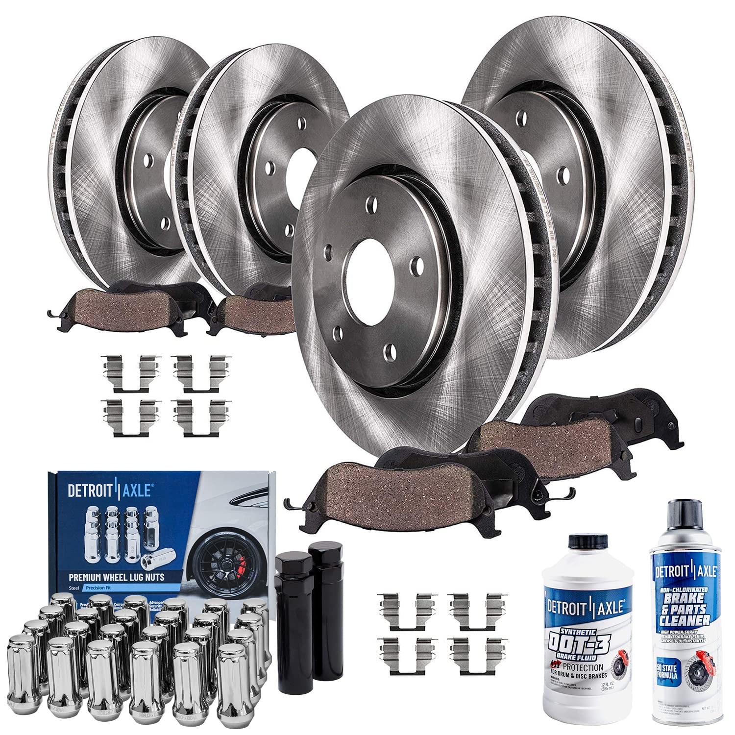 Kit Includes: 4x Front & Rear Disc Brake Rotors + 4x Front & Rear Ceramic Brake Pads + 24x Wheel Lug Nuts w/ 2 keys + 2x Brake Cleaner & Fluid