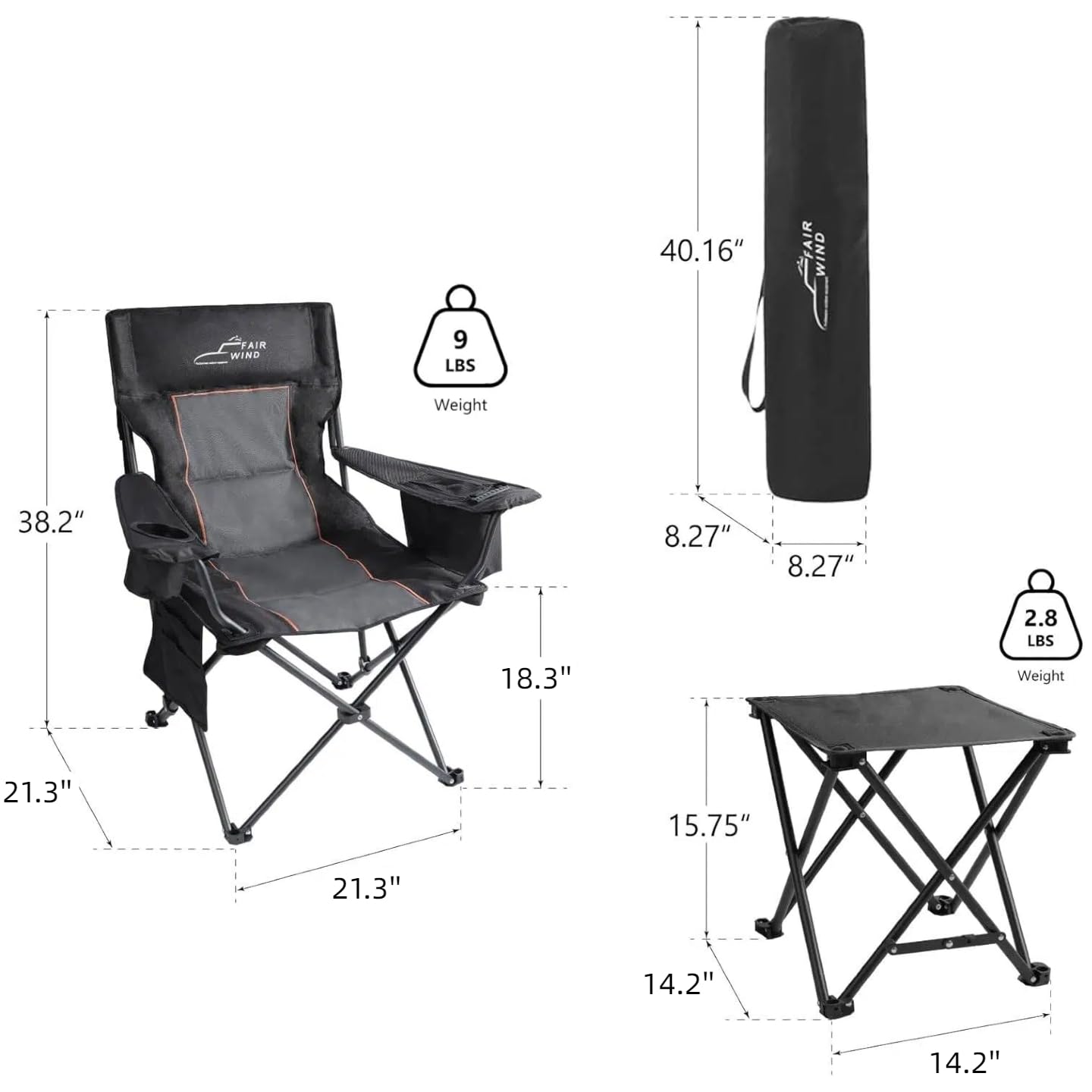 【Oversized Lawn Chair】: Widened design, more comfortable for your legs. Open Size 38.2'' X 21.3'' X 21.3''.