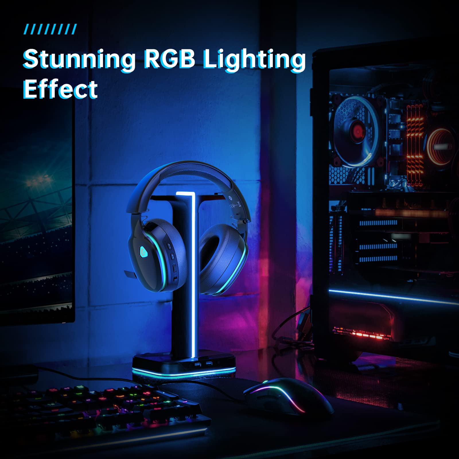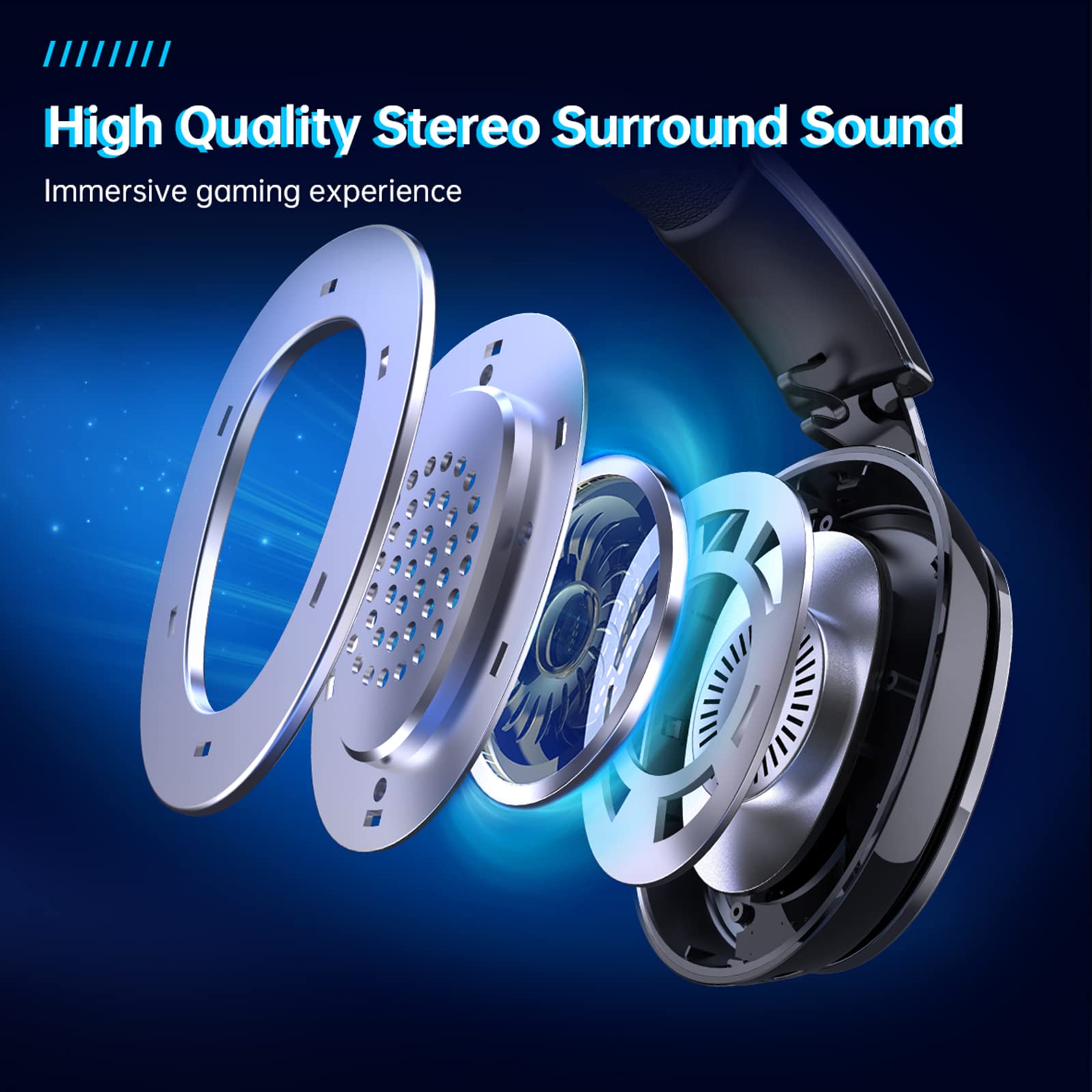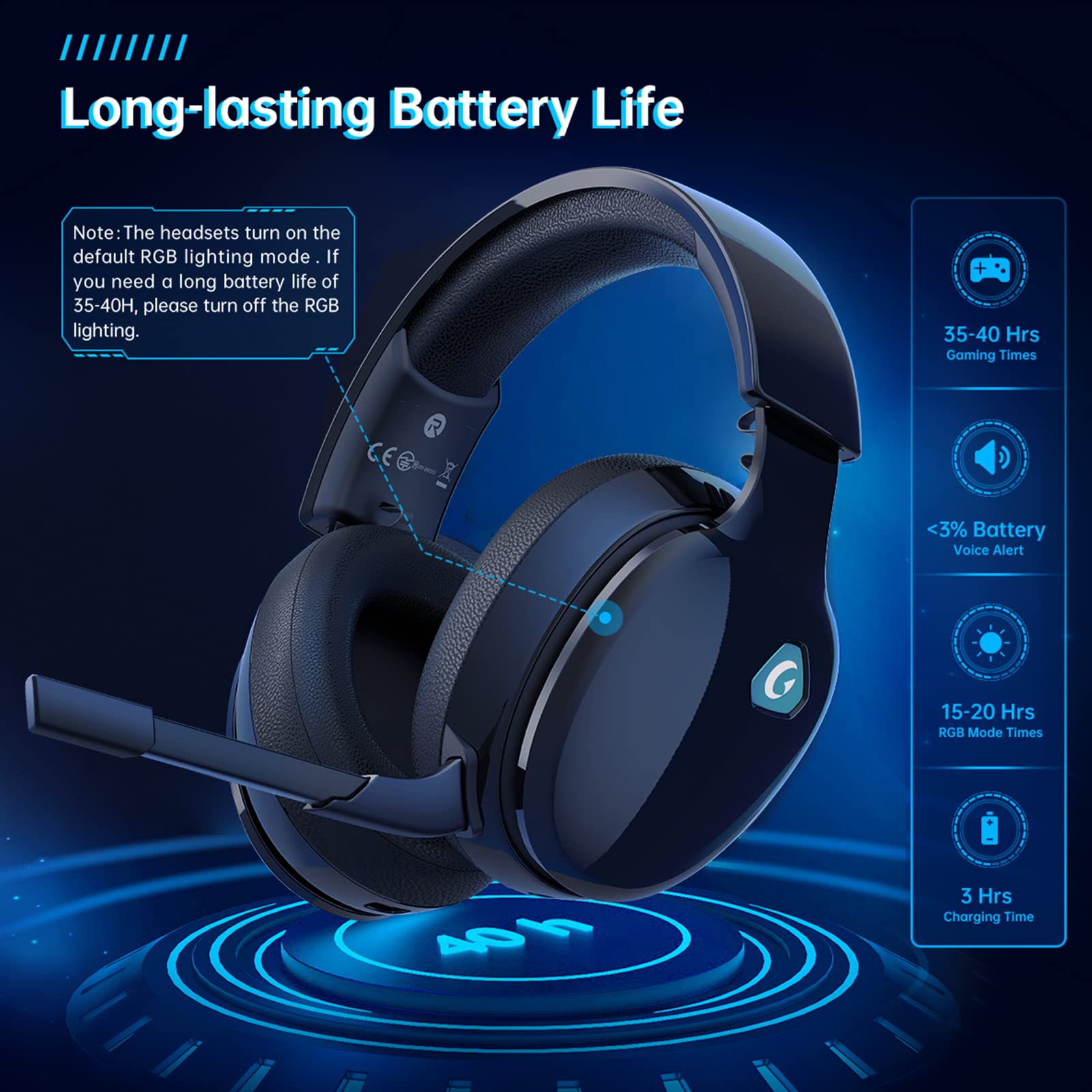 Ergonomic Design & Long-lasting Battery Life: Gtheos wireless gaming headset design padded adjustable headbands not only good for reducing head pressure but also suitable for various head shapes. Ears are completely covered by soft and breathable memory-protein earmuffs that isolate noises effectively and allow for long gaming sessions without fatigue. This pc gaming headset has a sustainable game time of 35-40Hrs. With cool red lighting effect turned on(15-20Hrs). Full-recharge in just 3Hrs.