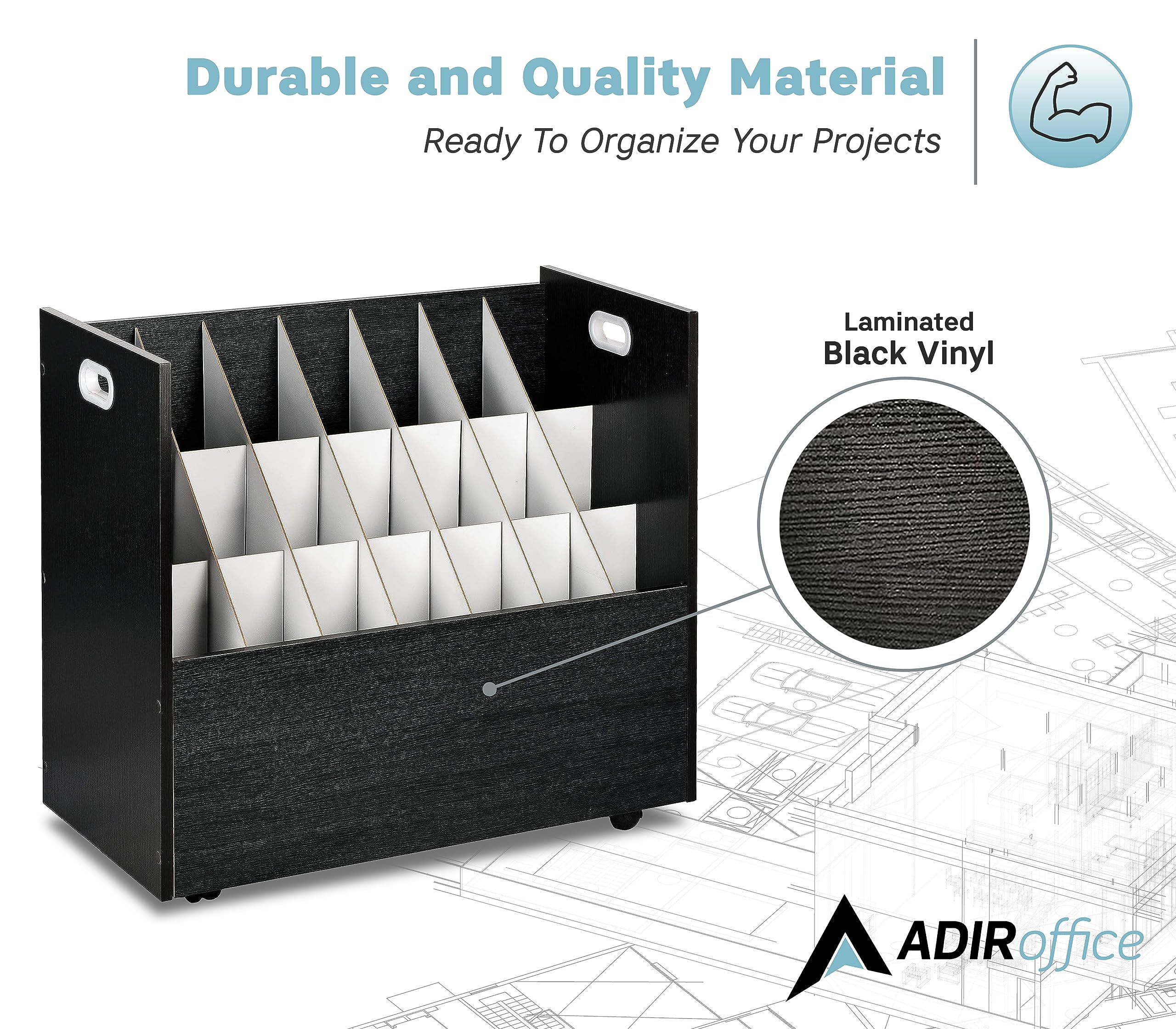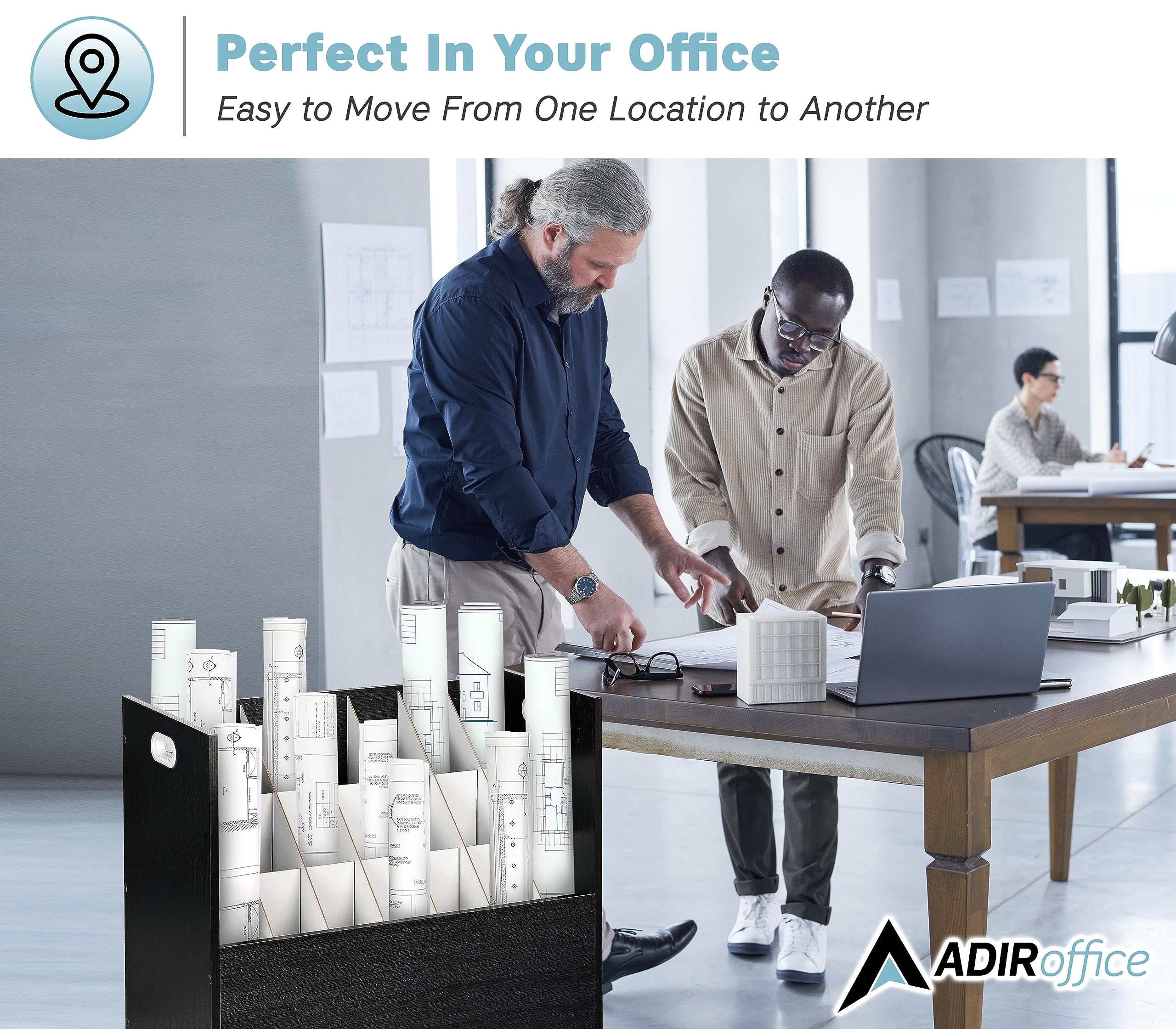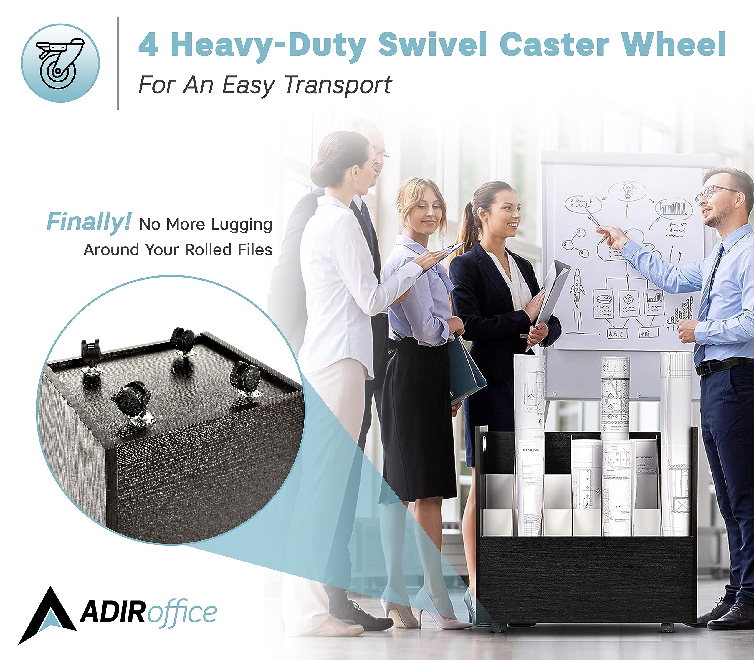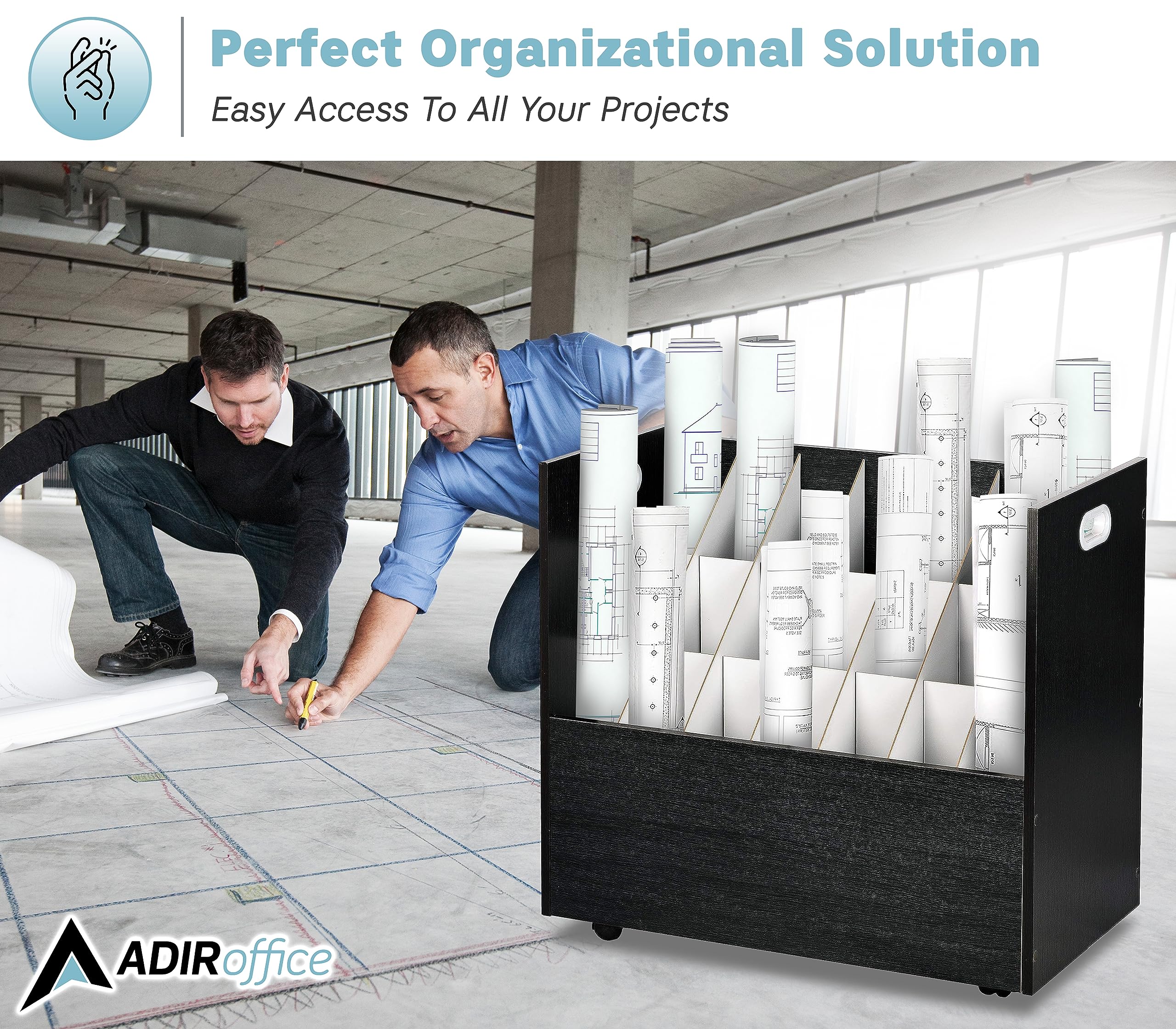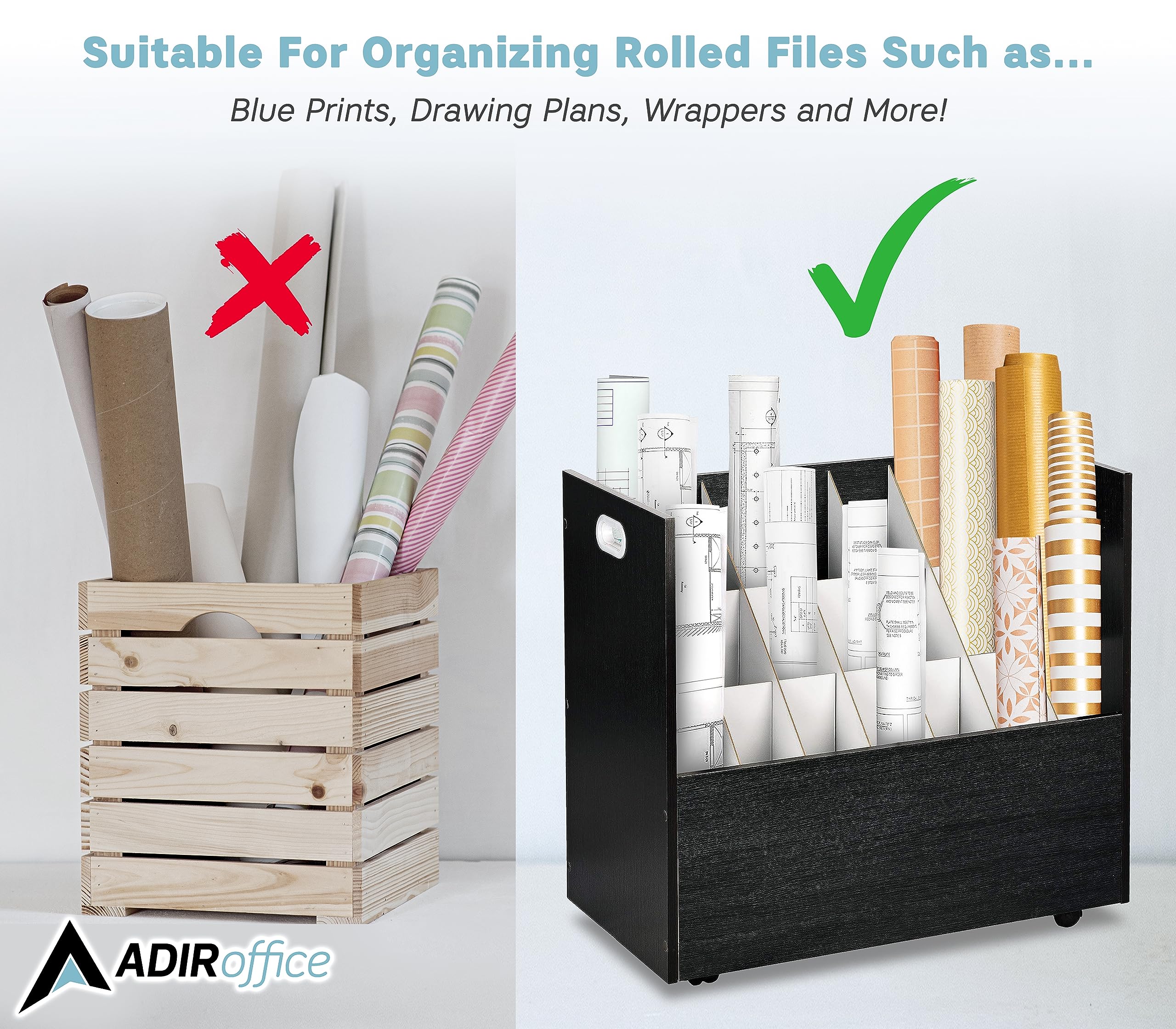 Versatile use: Adir’s rolled files organizer serves multiple purposes. It can be used as a blueprint storage cabinet, rolled poster storage, vinyl roll holder, map storage cart, architectural plan storage, and more.