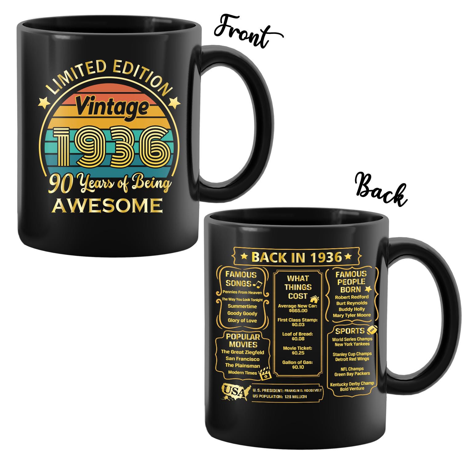 Nostalgic Design: Featuring a stylish and timeless design, this mug highlights the significance of the year 1936. Ideal for those who appreciate a touch of nostalgia, it's a unique and thoughtful gift that stands out from the ordinary.