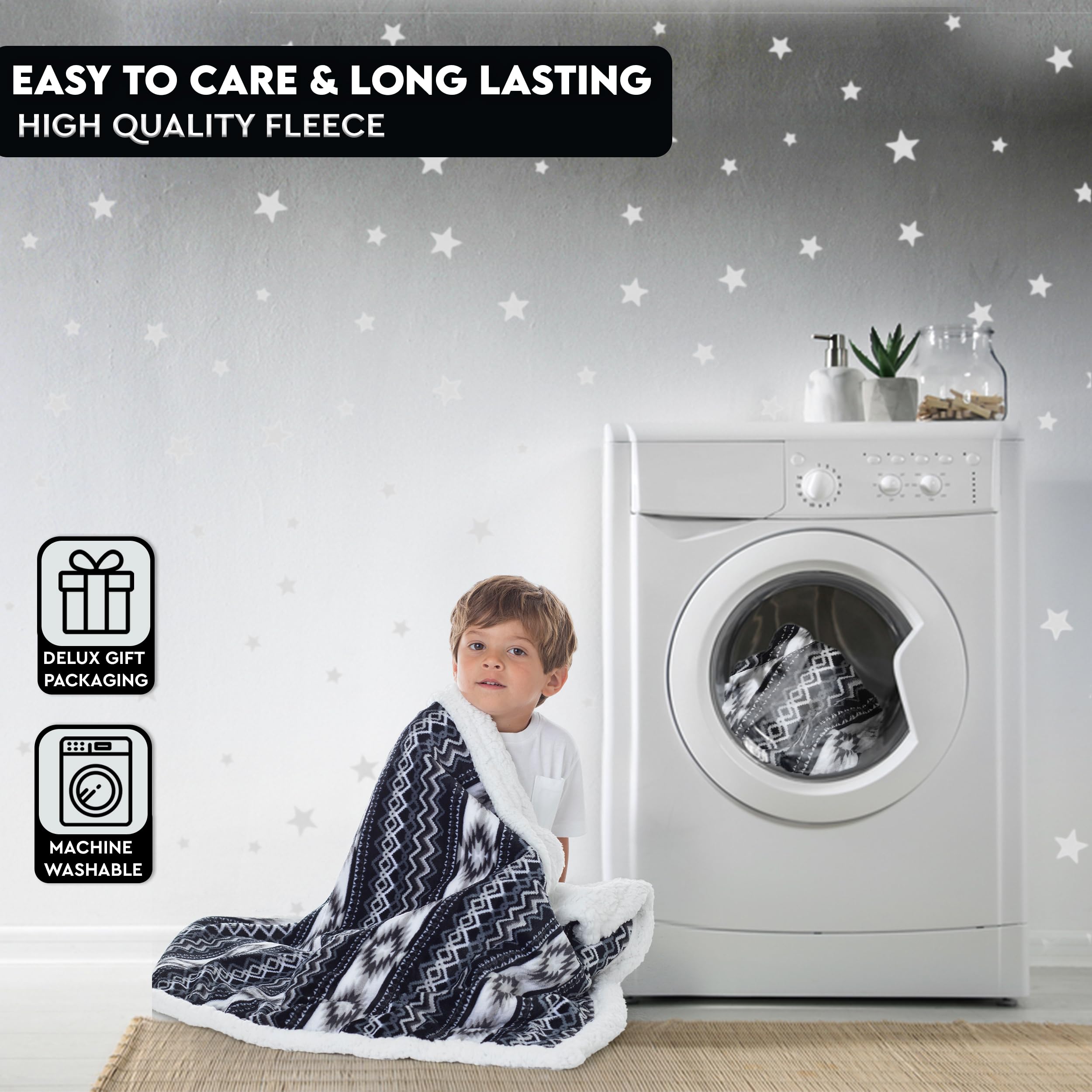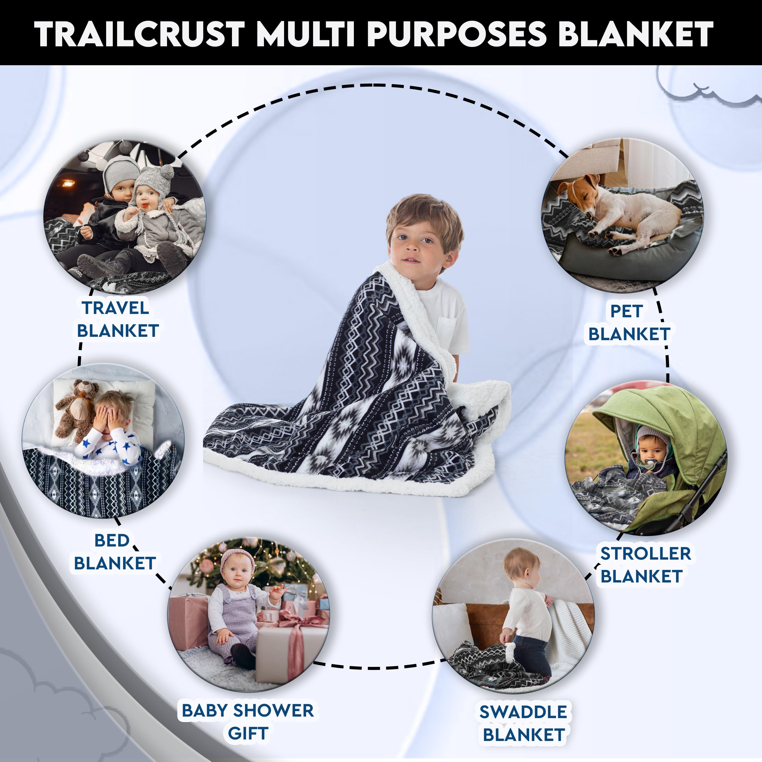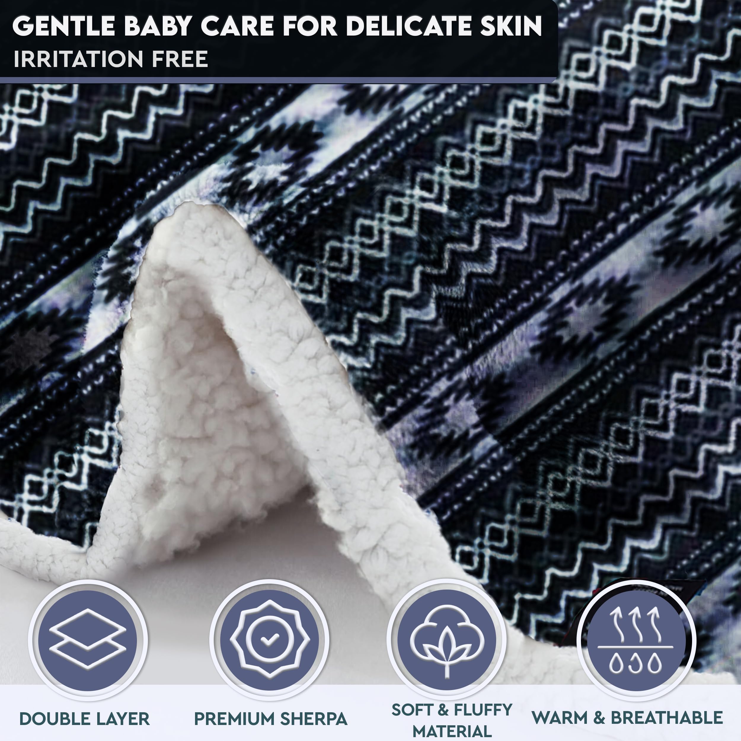 ★ PLUSH MICROFLEECE & FUZZY SHERPA FOR MAXIMUM COMFORT - The soft outer micro fleece lining combined with the fluffy inner Sherpa lining will make this fleece baby blanket ideal for your stroller, nursery, camping, winter cabin or just a lazy night on your couch!