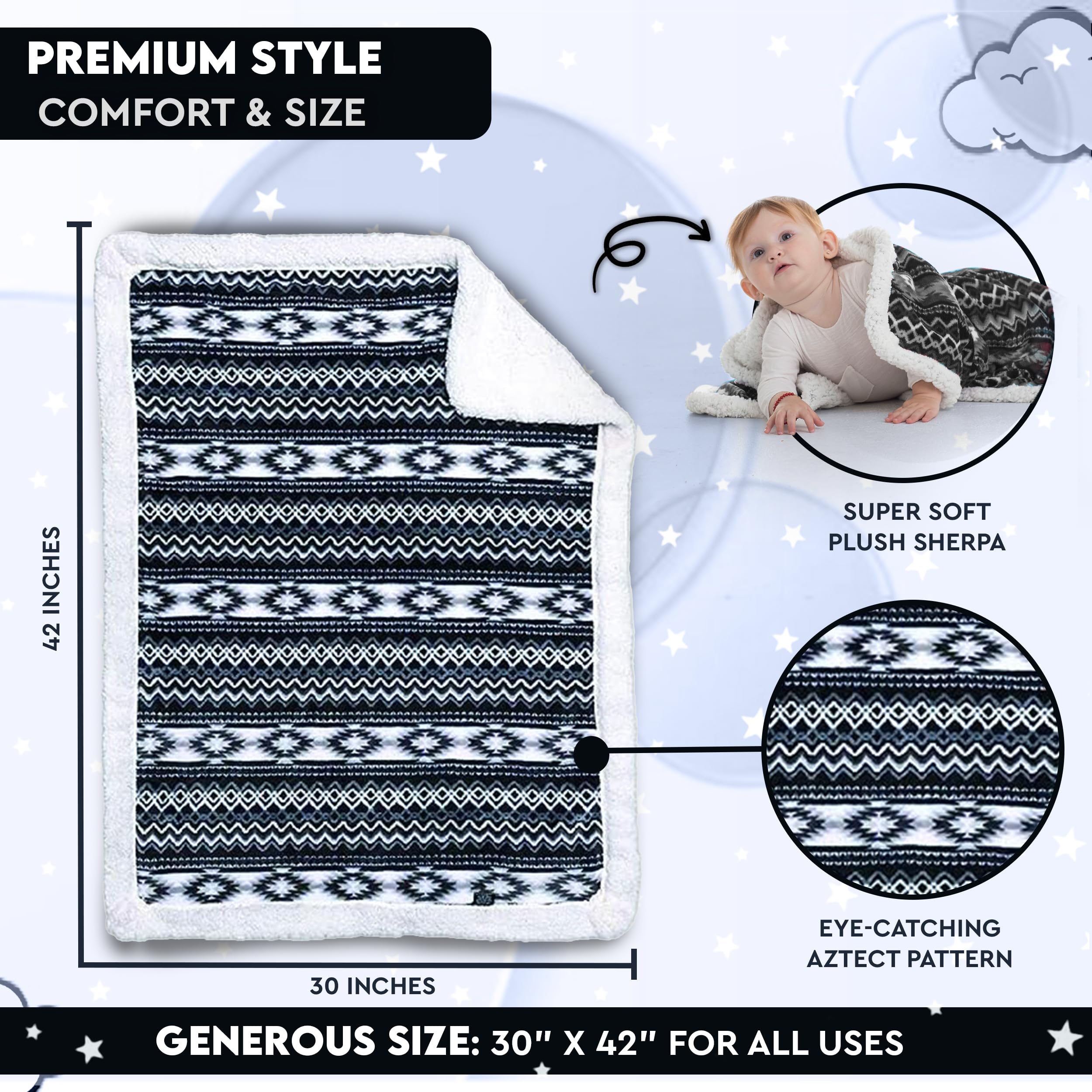 ★ EYE-CATCHING AZTEC / IKAT PRINTS FOR EXTRA STYLE POINTS - If you are looking for a chic baby shower gift idea, a birthday present for your loved ones or just a gift for yourself, our thick and generously-sized cozy fleece baby blanket with Aztec prints is exactly what you need!