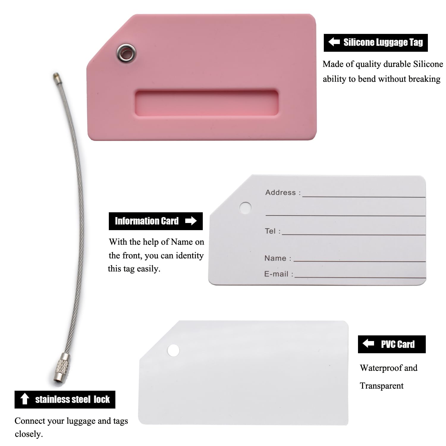 【Flexible & Durable】Our luggage tags Made of quality durable Silicone ability to bend without breaking. The reinformed metal hoop will ensure that your bag tags will be attached to your belongs all the time.