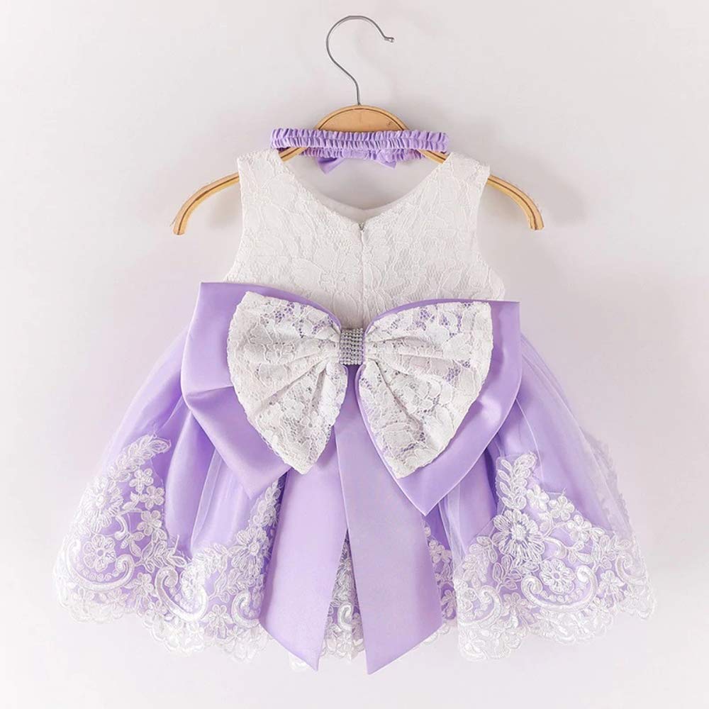 Baby Girls Lace Dresses - Pack with headwear, v-neck, bowknot tie on the back, hidden zipper,embroidery pattern,elegant design, a best gift for your princess baby girl.