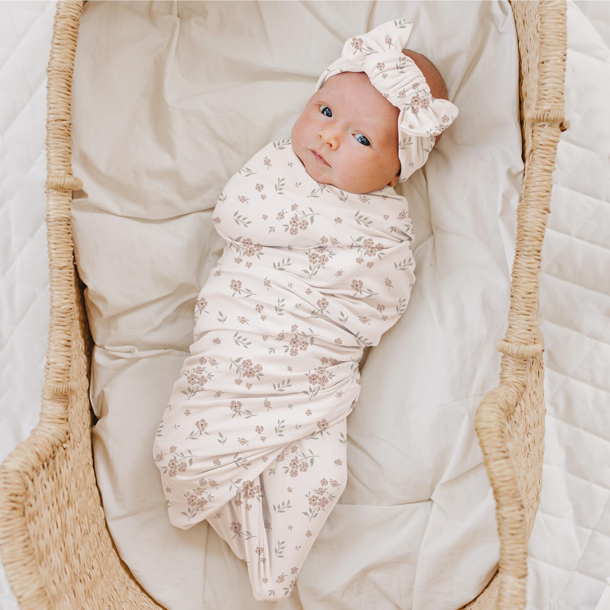 Generous Size: Our newborn girl swaddle measures approx 30" x 30" , generous enough to fit 0-3 months babies with a weight of 6lbs. Baby girl bow is of great elasticity and can fit different head sizes
